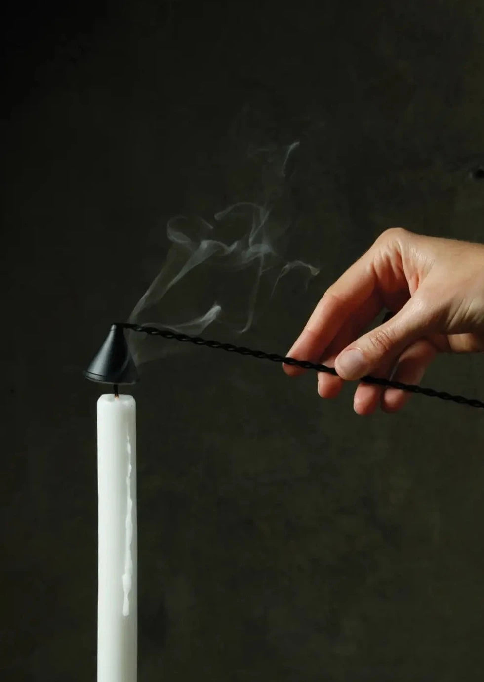 This classic metal Candle Snuffer has been given a modern makeover with an intertwining metal handle and sleek cone shaped snuffer.