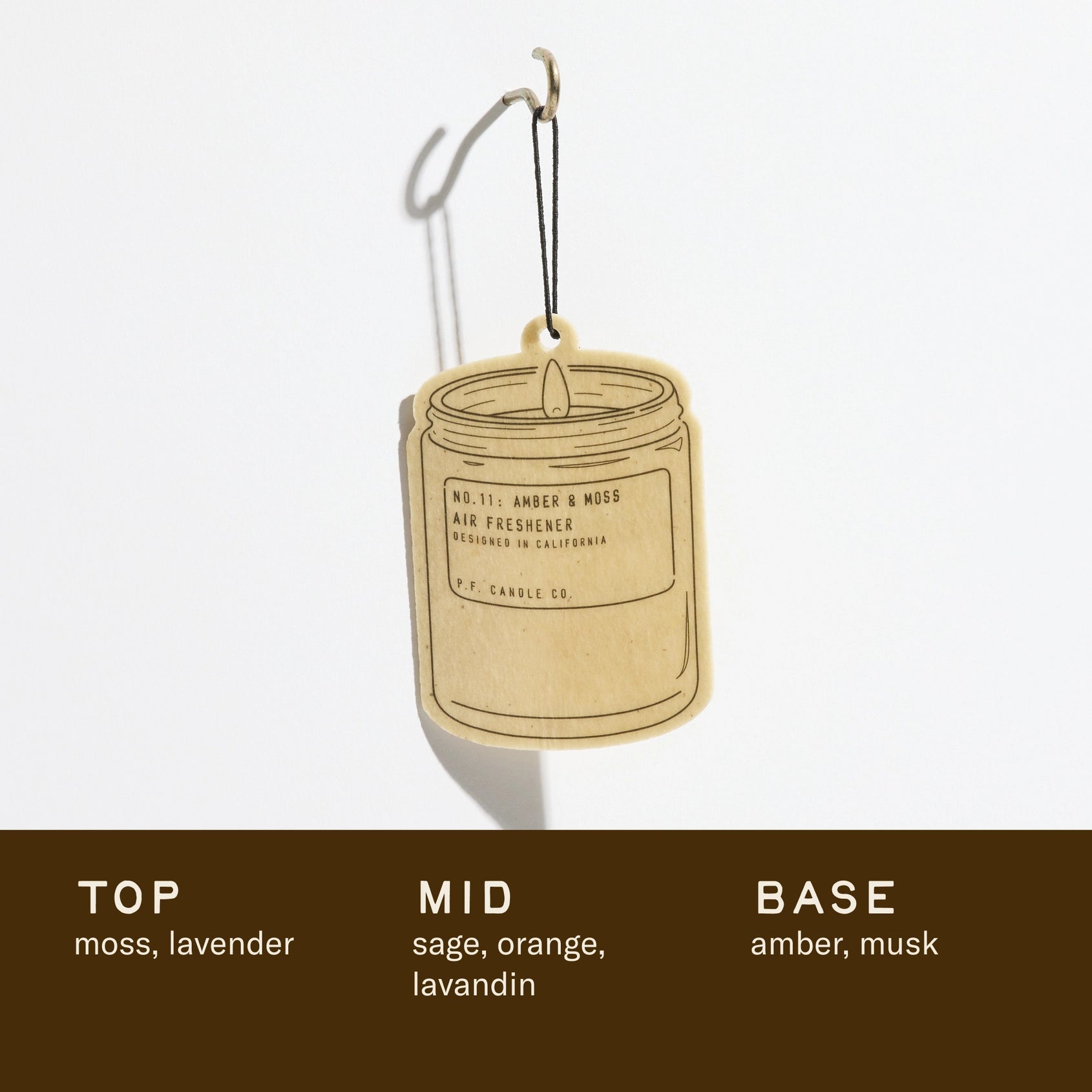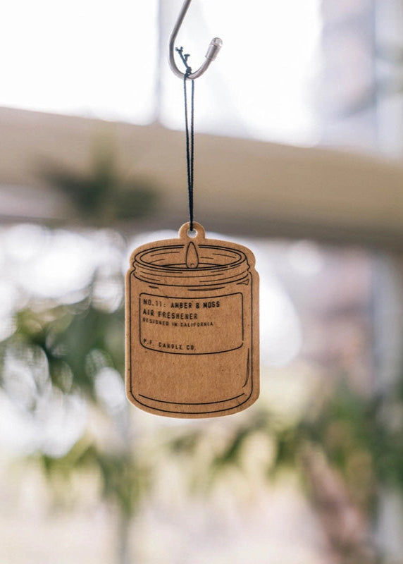 A Car Fragrances with the scent of a weekend in the mountains, sun gleaming through the canopy. Notes of sage, moss, and lavender. Meant first for hanging on the rearview mirror, these are also suitable in other small spaces like bathrooms, closets, and more.