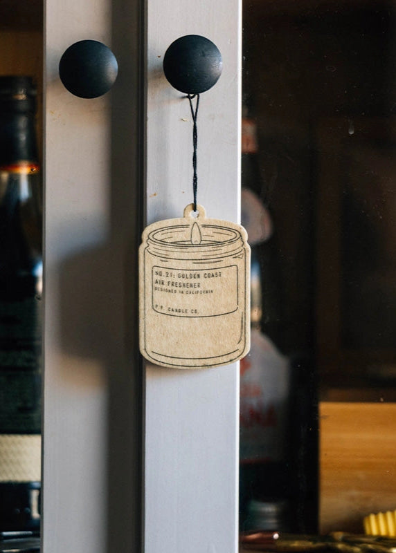 A Car Fragrances with the scent of Big Sur magic, wild sage baking in the sun, the rumble of waves and rocks. Notes of eucalyptus, sea salt, redwood, and palo santo. Meant first for hanging on the rearview mirror, these are also suitable in other small spaces like bathrooms, closets, and more.