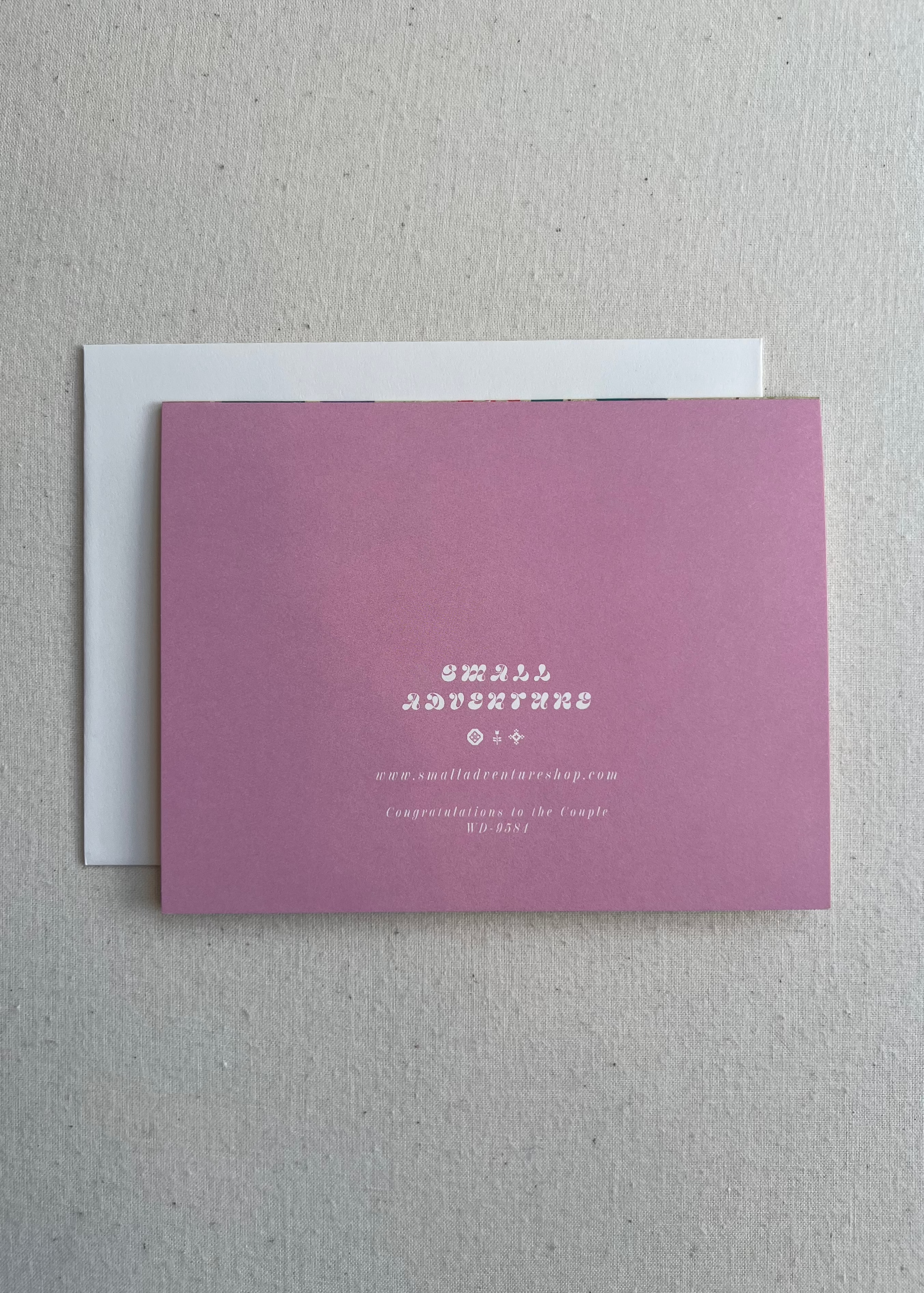 Silver foil-pressed wedding greeting card featuring a floral design.