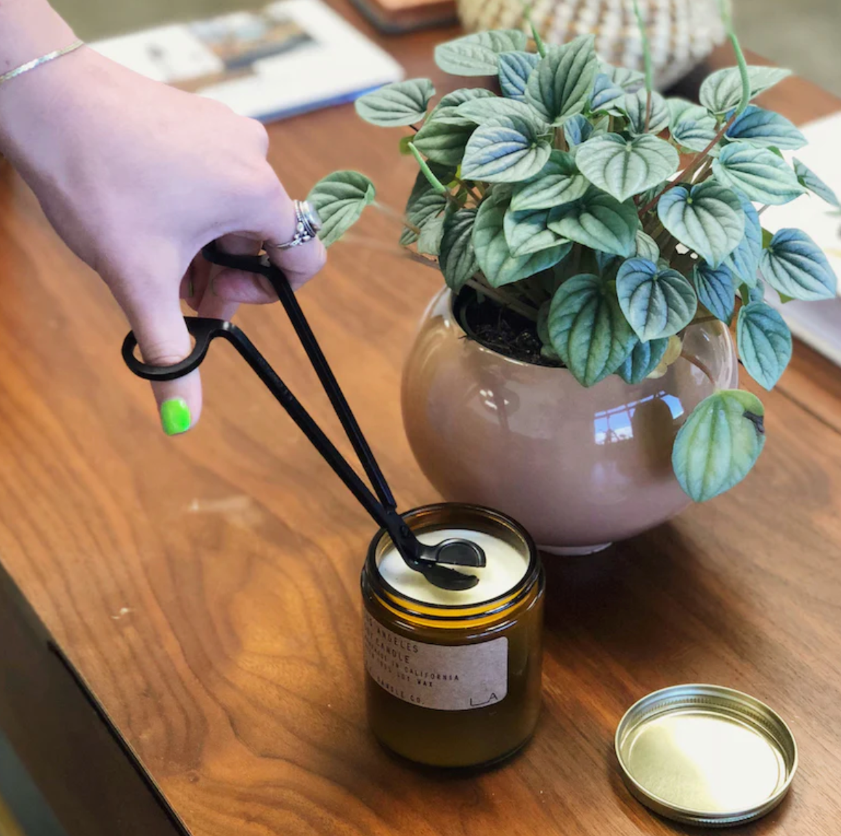Properly trimming your candle's wick helps to ensure product quality and longevity. These smooth matte black wick trimmers are the perfect companion to any candle collection. Heavy duty yet lightweight, they provide a clean and precise cut, and catch excess trimmings for disposal.