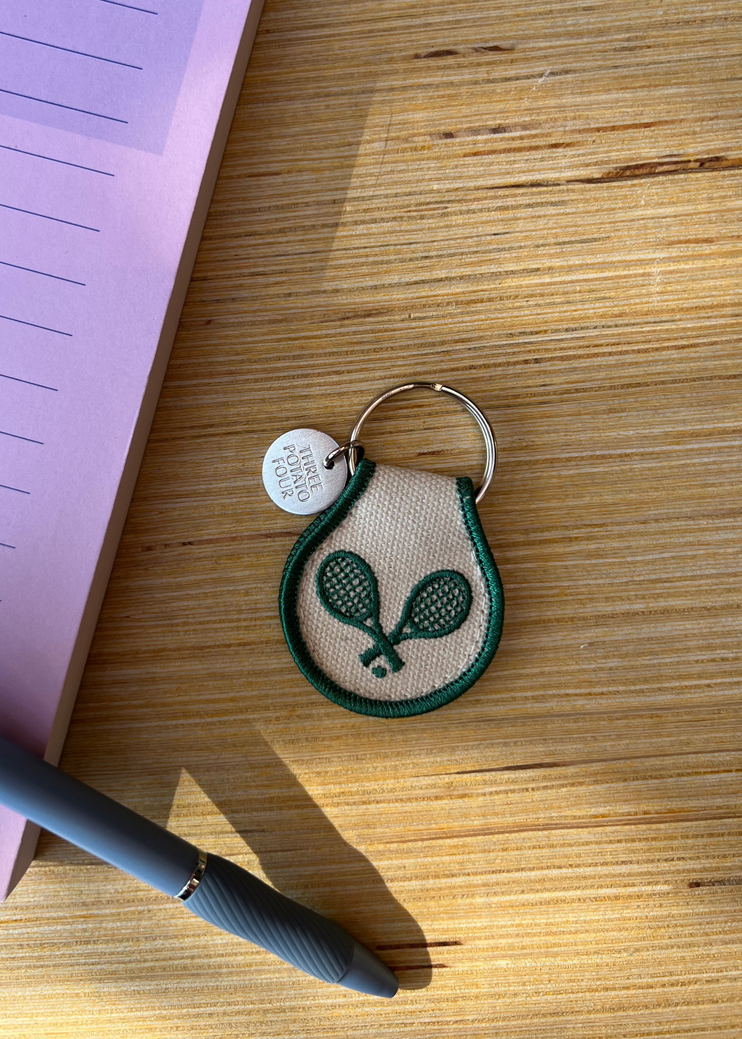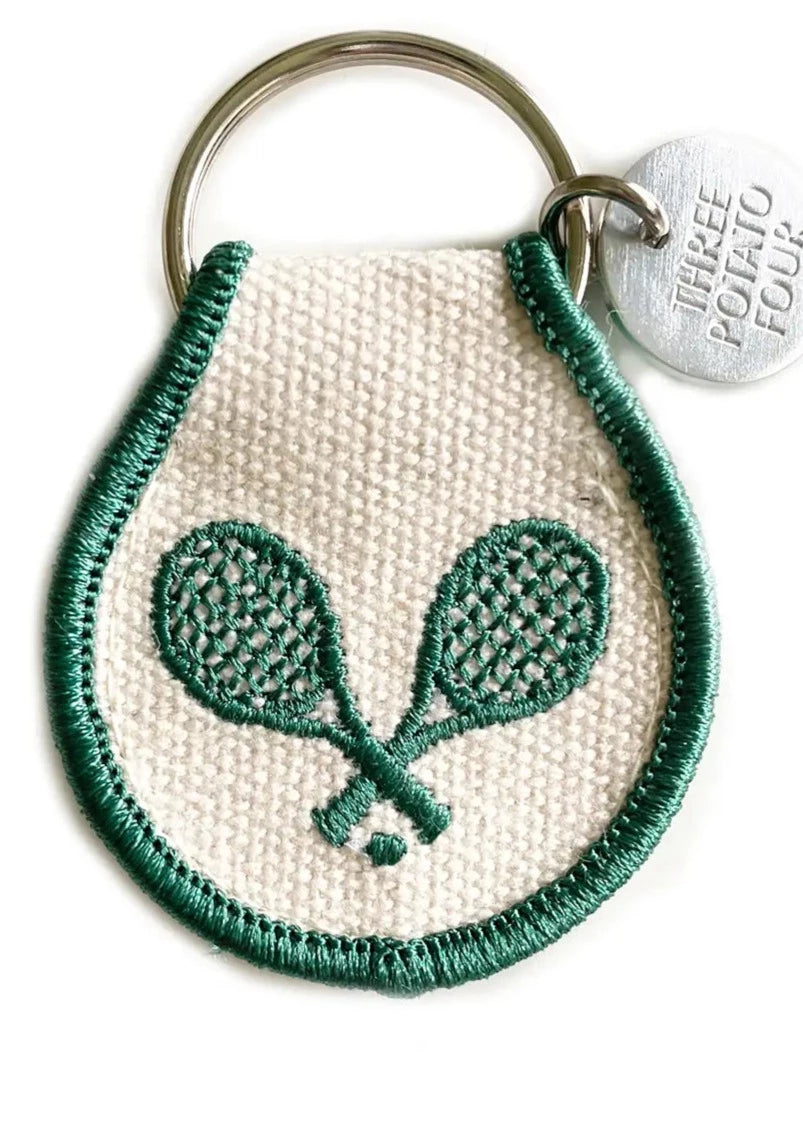 Super cute, double-sided, raised embroidered keychain with 3-dimensional tennis rackets. Made with high-quality materials for a durable, long-lasting accessory.