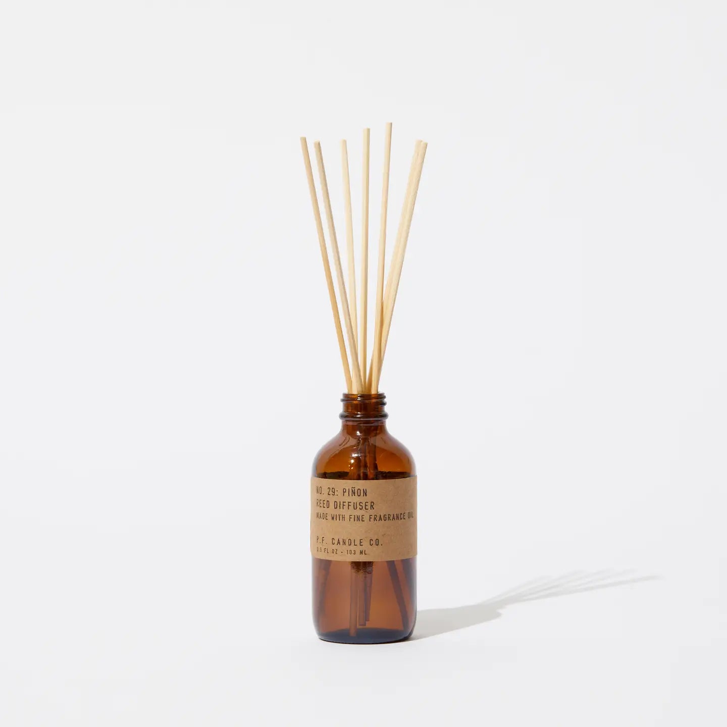 Just set it and forget it! This low maintenance Reed Diffuser offer all-day fragrance with no match necessary. Perfect for living room nooks or as a bookshelf companion. Each diffuser contains a 3.5 fl oz blend of naturally-derived and man-made fragrance oils in a 4 oz amber apothecary-inspired bottle. Scent of piñon logs, cedar, and vanilla.