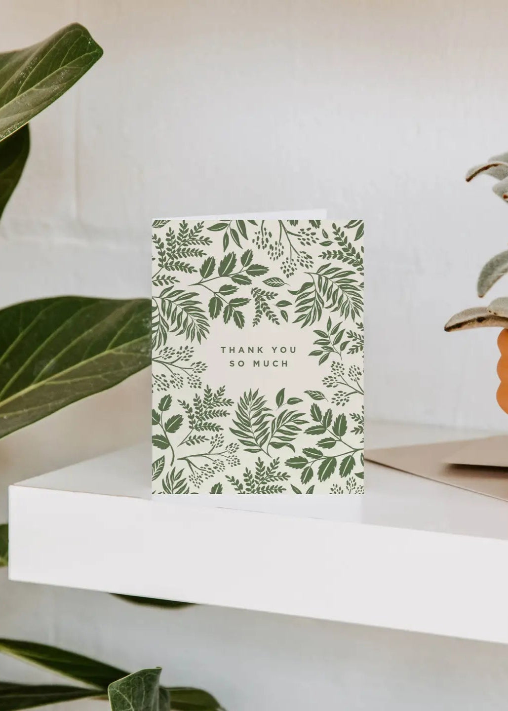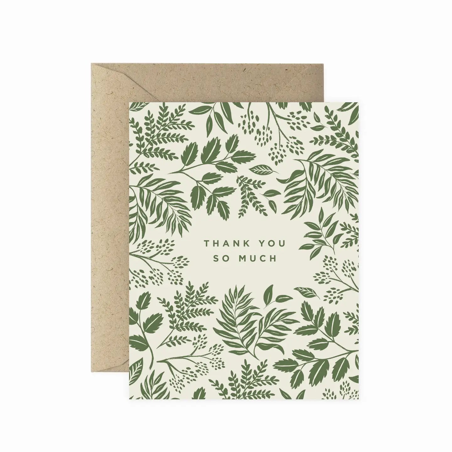 Express gratitude with the Thank You Vines Card. This elegant card is perfect for expressing thanks to friends, family, or colleagues. With its beautiful design and heartfelt message, it's a thoughtful gesture that will leave a lasting impression. Say "thank you" in style with this special card.