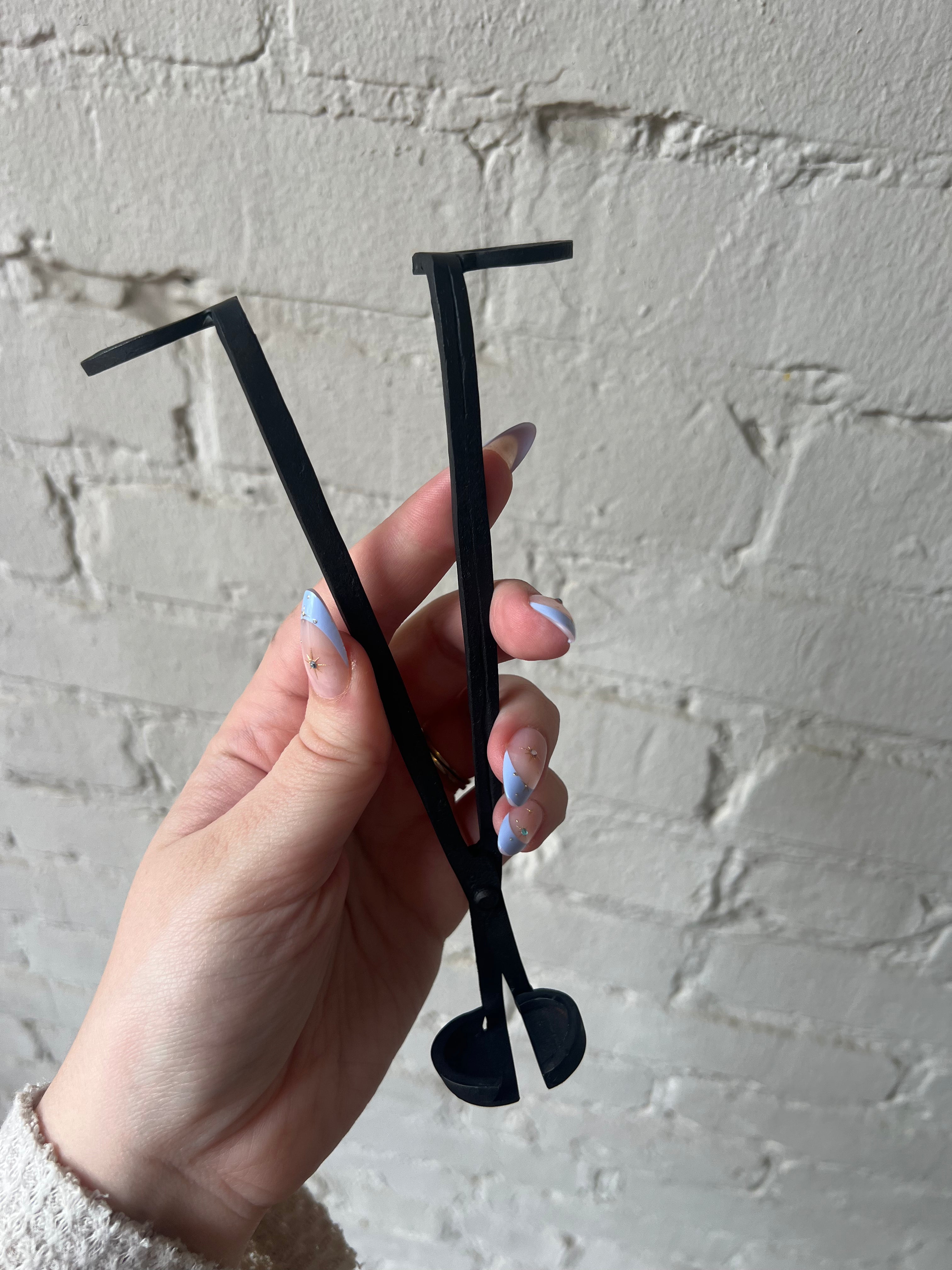 This classic metal Candle Snuffer has been given a modern makeover with an intertwining metal handle and sleek cone shaped snuffer.
