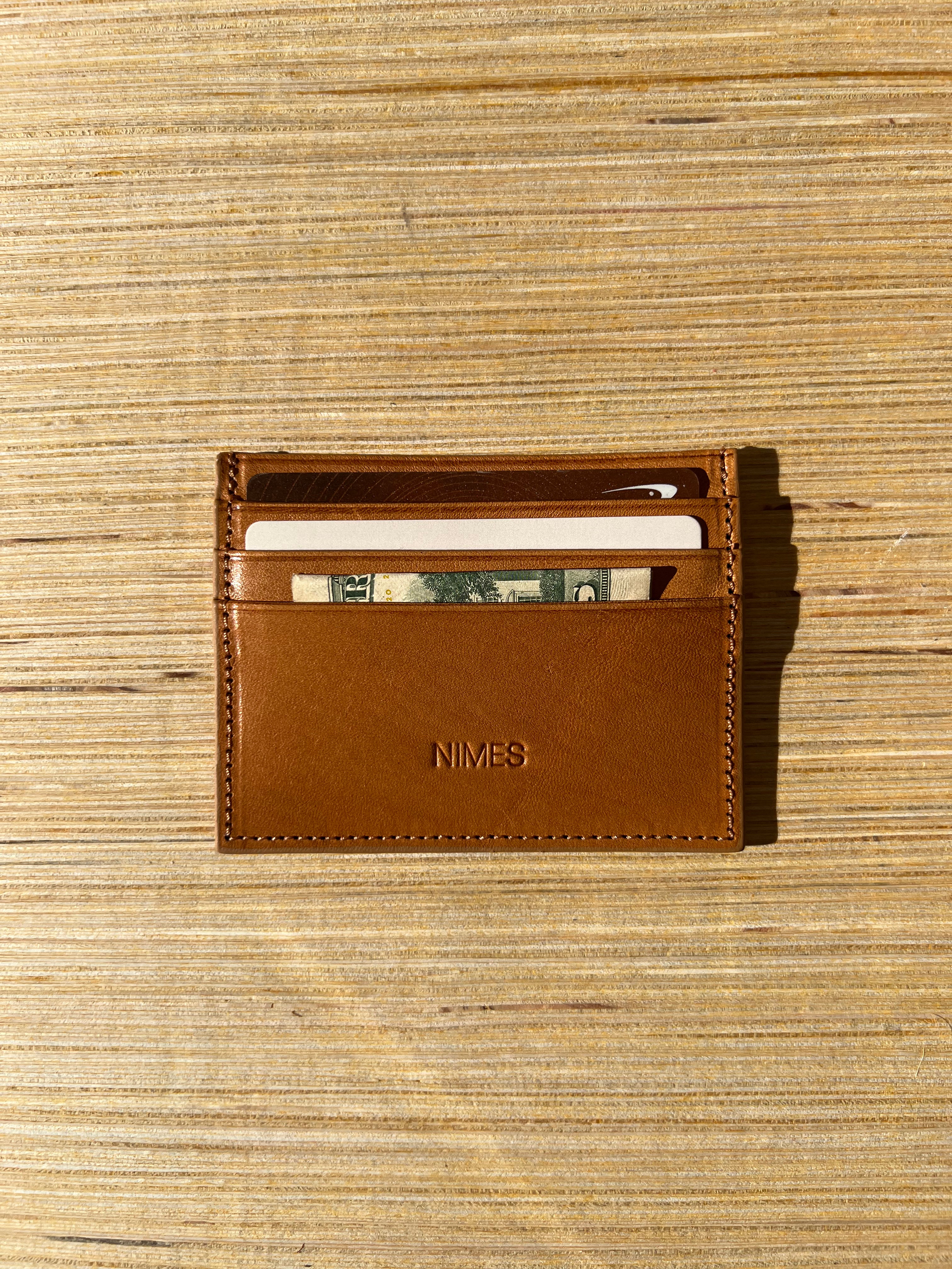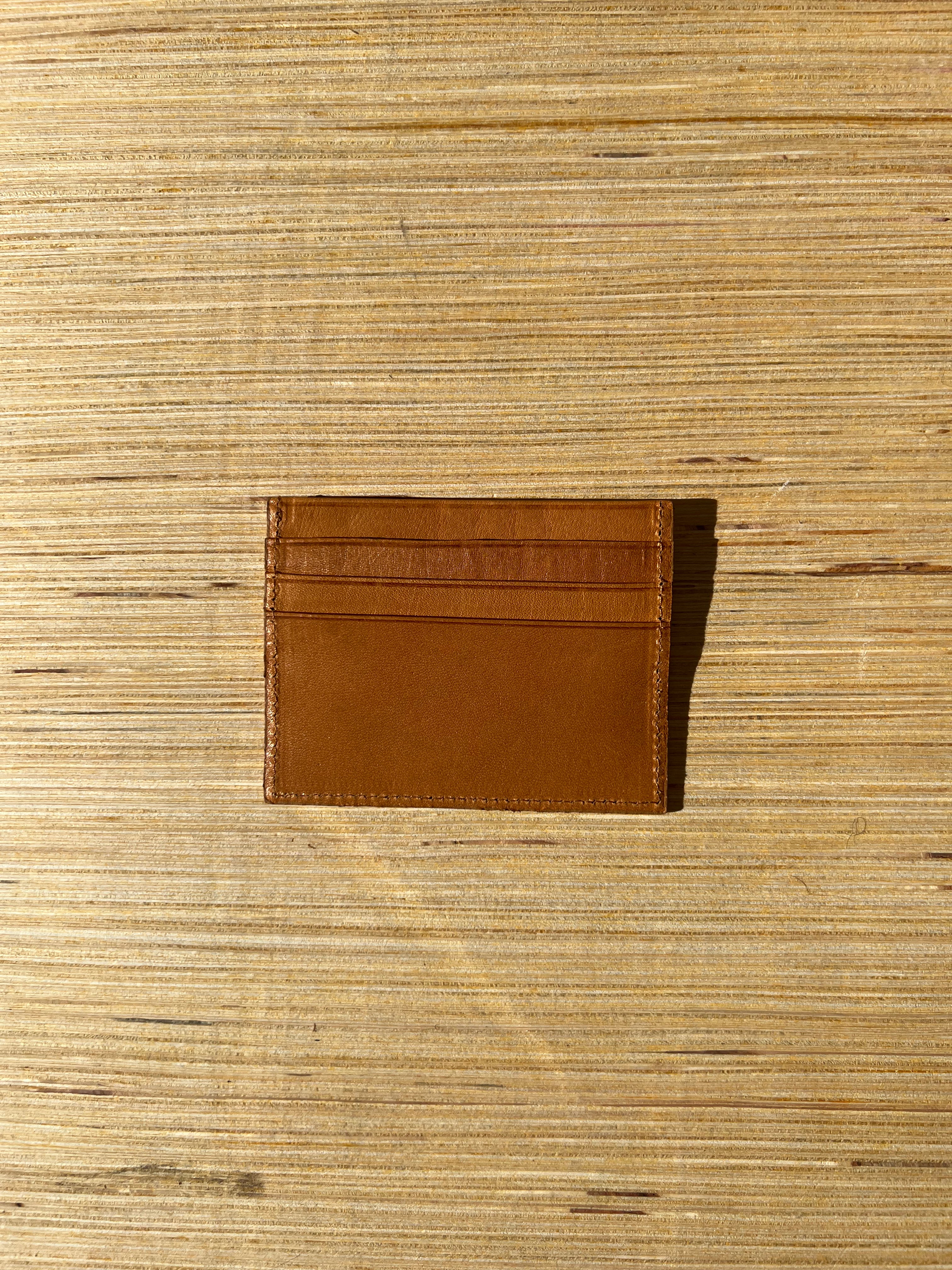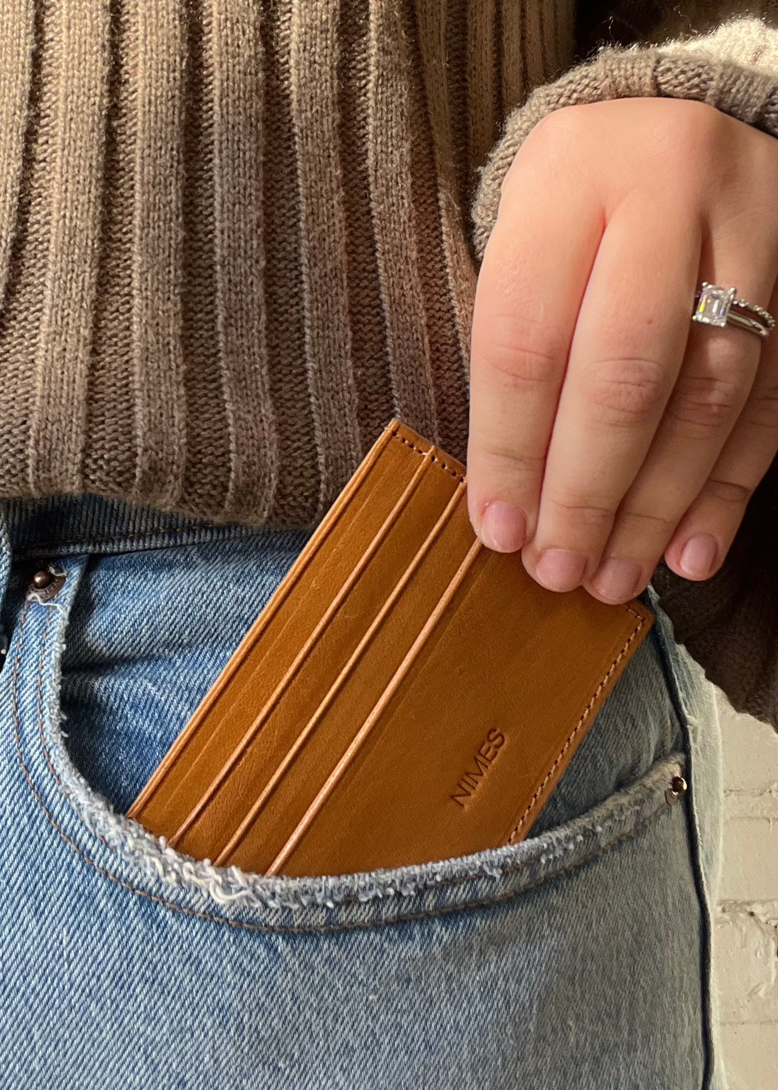 Sleek and simple, this leather card holder is an easy way to elevate your lifestyle. Hand made using vegetable tanned natural smooth navy leather, it has one internal pocket and 3 credit card slots on each side, and is lined with printed fabric.