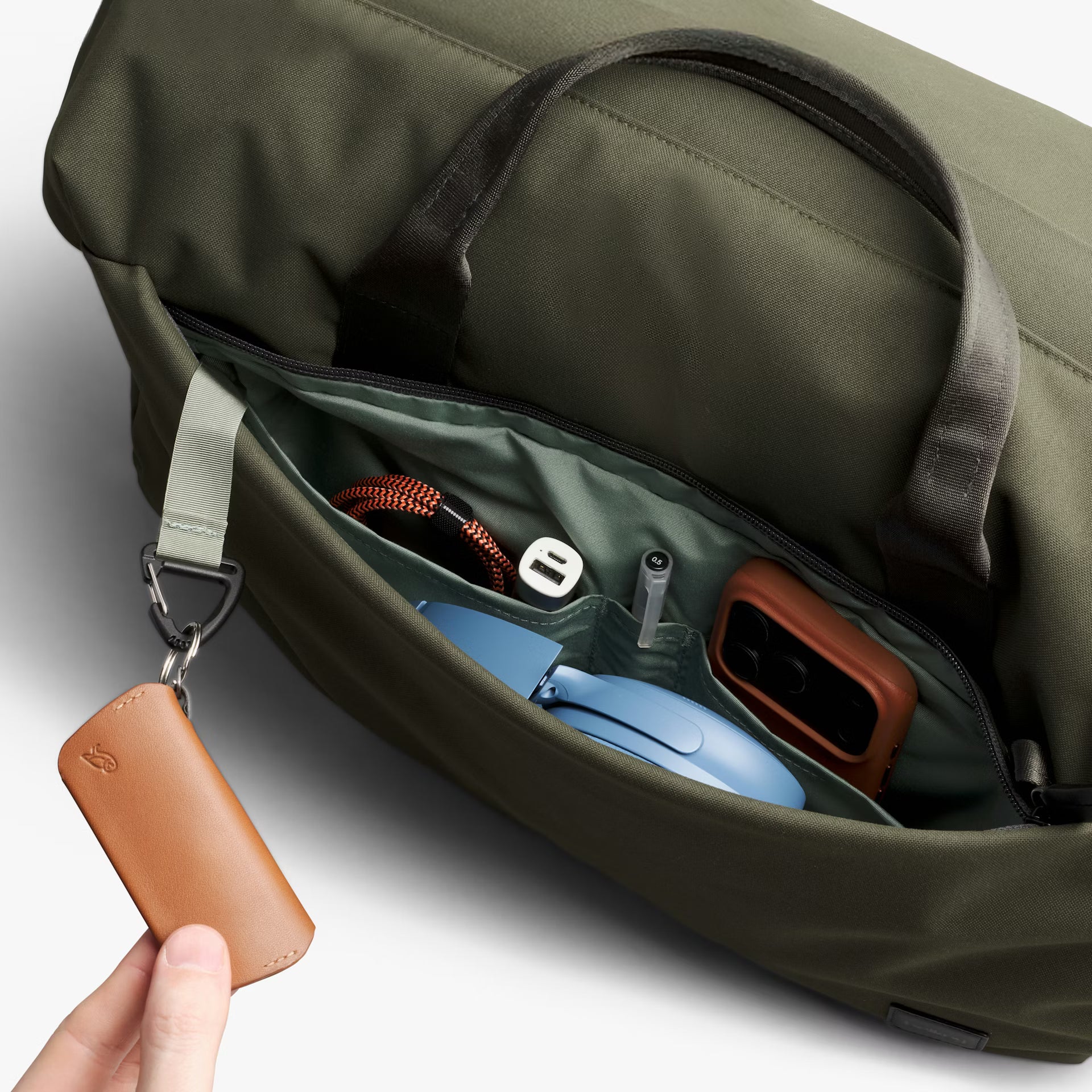 - External quick-access pocket with key clip