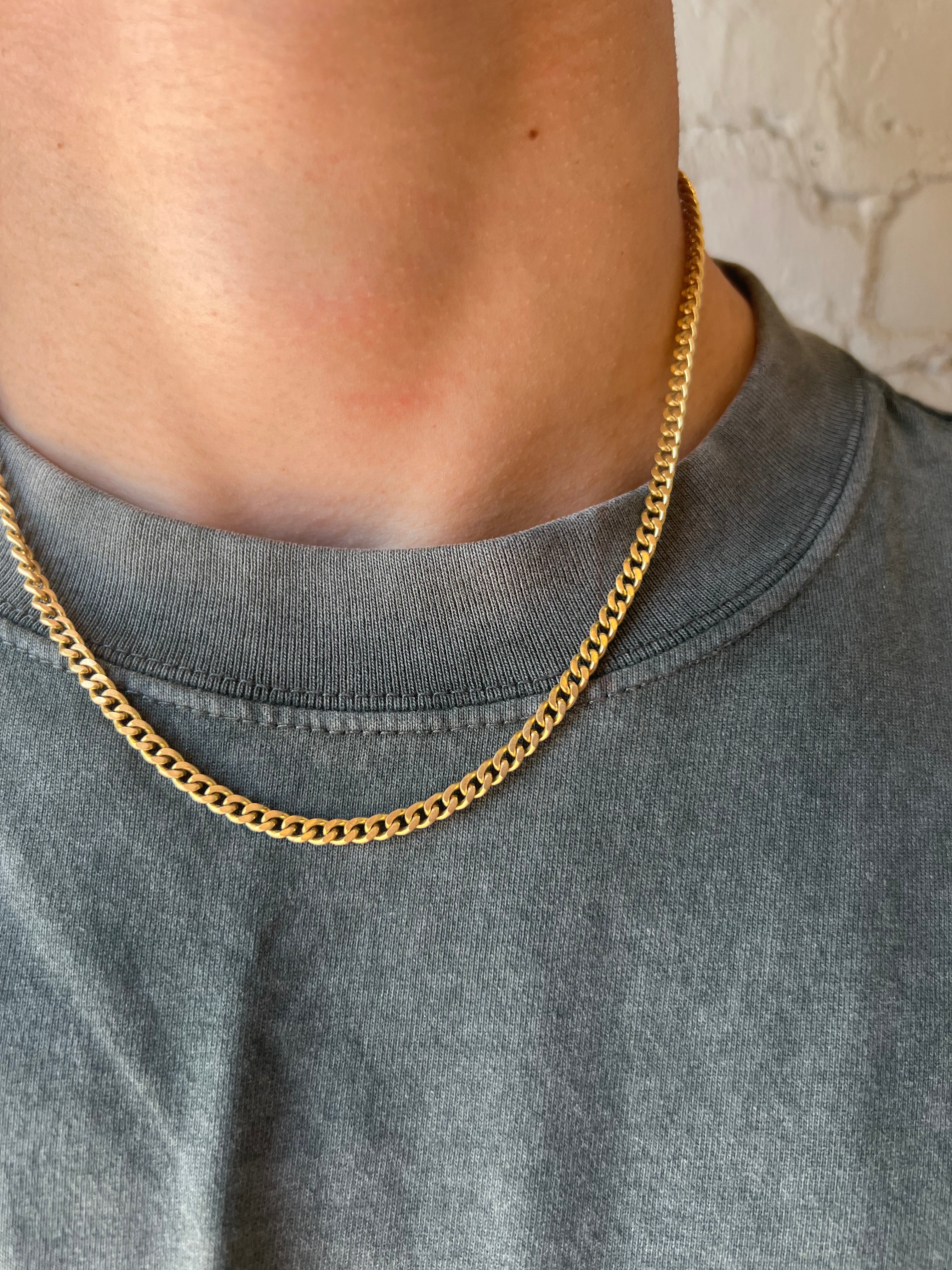 This stainless steel curb chain necklace is a sleek and durable accessory, perfect for any man's wardrobe. The versatile design and high-quality material make it a long-lasting addition to any outfit. With its classic style and masculine aesthetic, this necklace is sure to elevate any look.