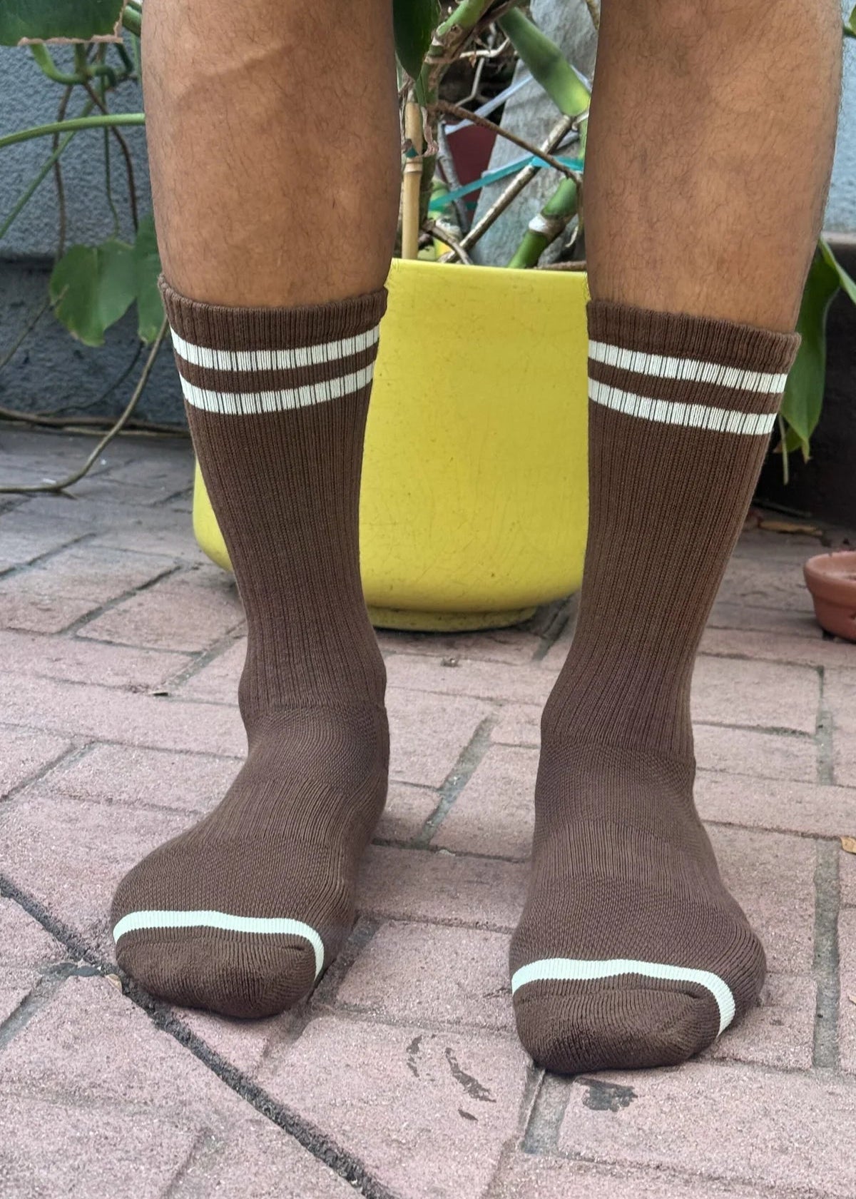 The Boyfriend Socks Extended is a calf length sport sock. They have a classic vintage sporty look but can be styled with all of your daytime looks and our favorite socks to lounge around the house.