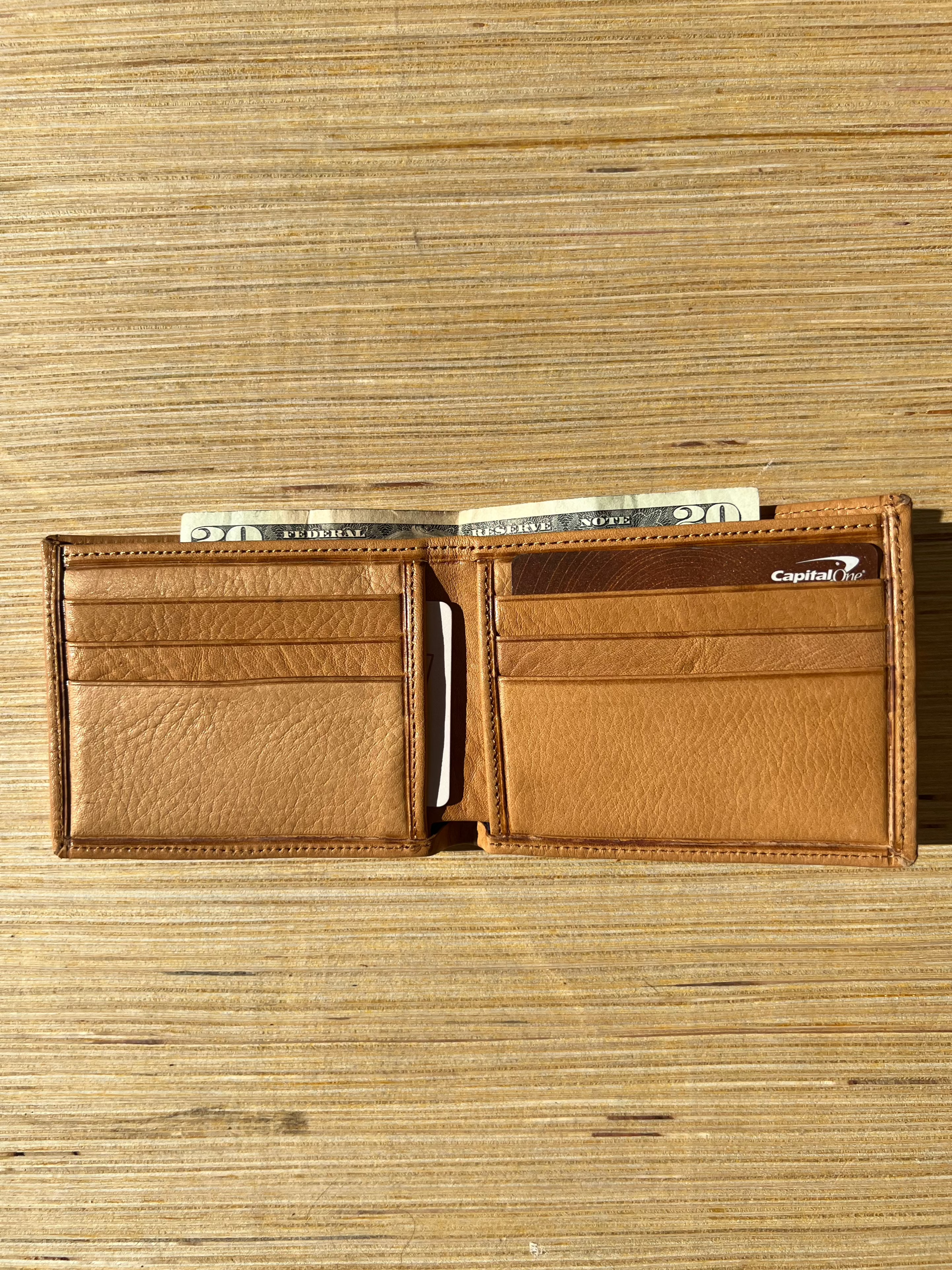 For the minimalist, this timeless wallet is sleek and just the right size. Featuring vegetable tanned natural grain tan leather, it has one big internal pocket for bills and 6 credit card slots.