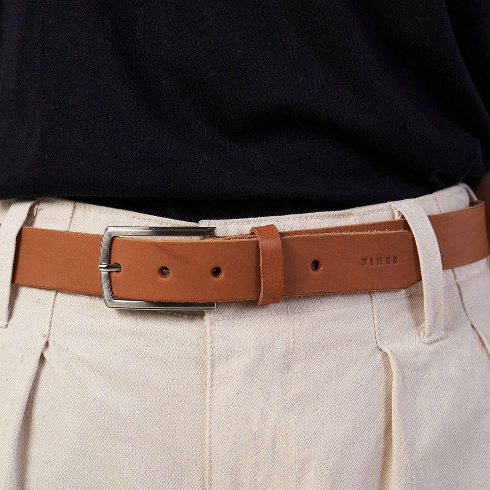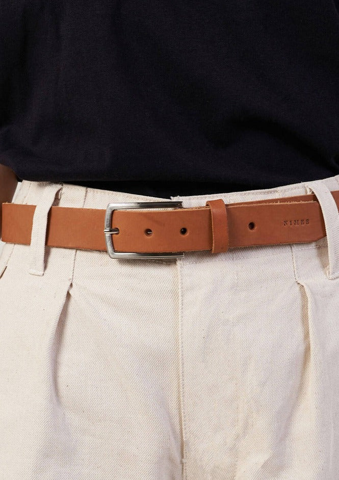 A closet staple, made with quality and timelessness, this vegetable tanned black leather belt features a nickel buckle. It's versatility and minimal design lends it to being worn every day with any outfit.