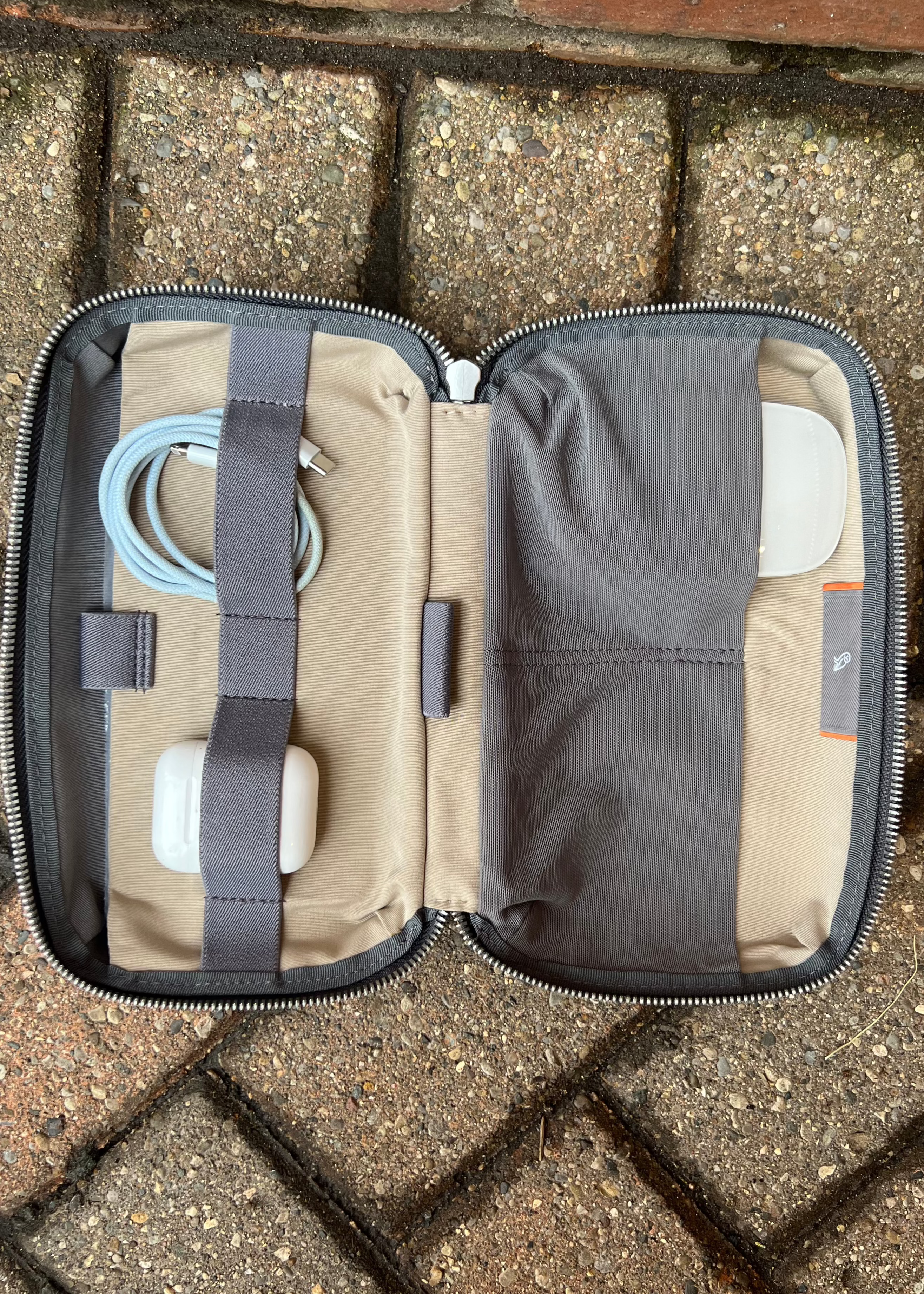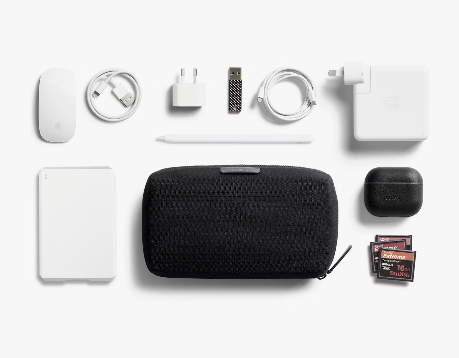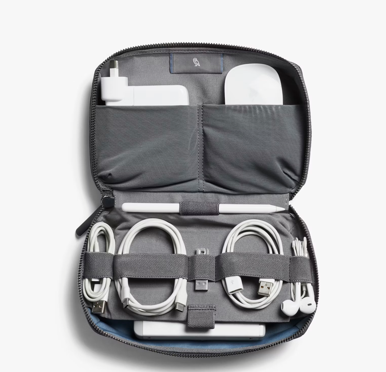 Easily organize all of your tech accessories in one place with the specially designed Tech Kit. This kit features a spacious main compartment optimized for larger accessories and extra bits, as well as a zipped flat design for easy access. The magnetic slip pocket can fit a power bank, while the stretch mesh pockets are perfect for storing smaller bits and pieces. Keep your cables organized with the floating wall and elastic cable organizer inside. Made from recycled woven fabric and Ribba Weave, this kit is both environmentally friendly and durable.