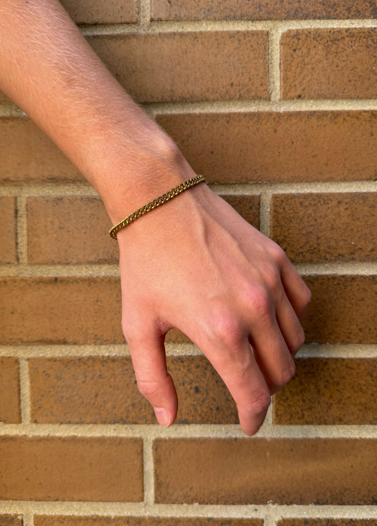 The bracelet features a 5mm brass chain, making it a stylish and sturdy accessory.