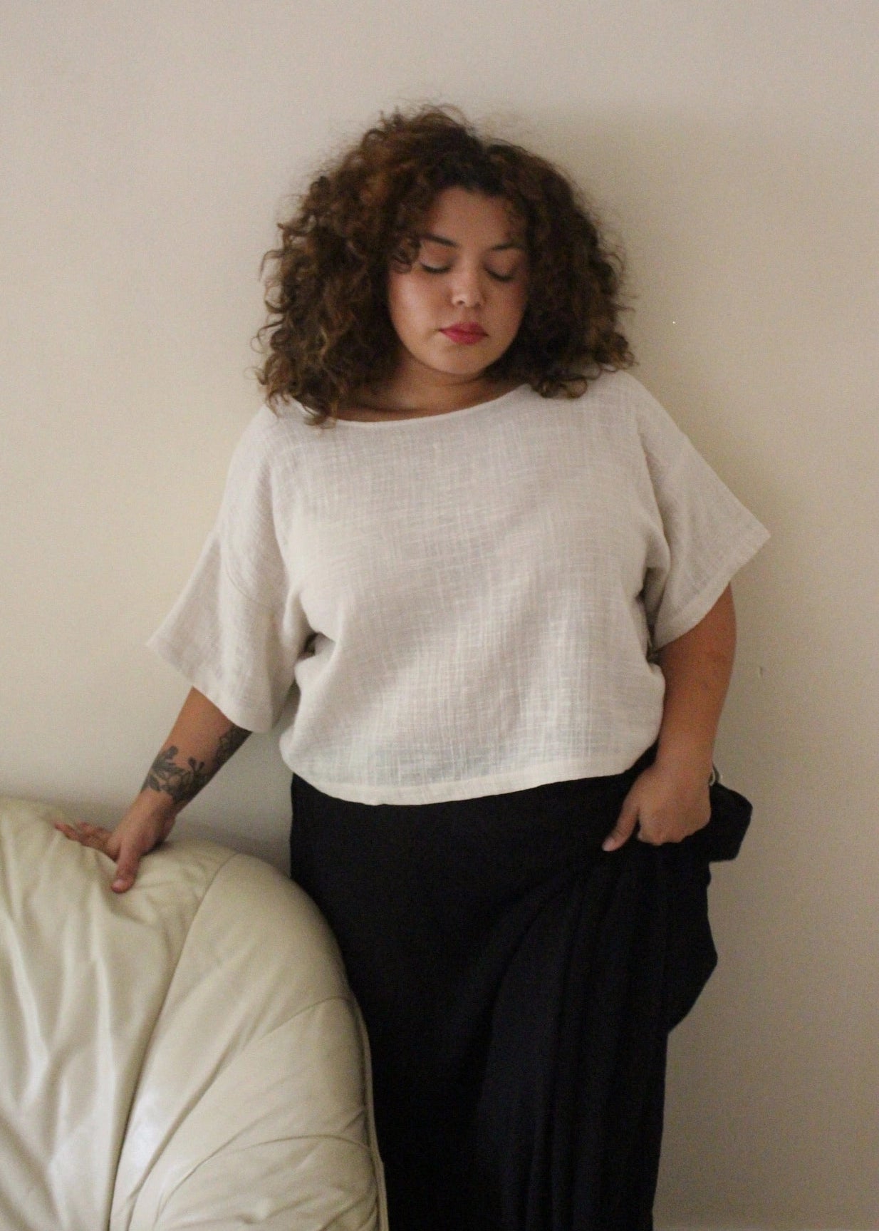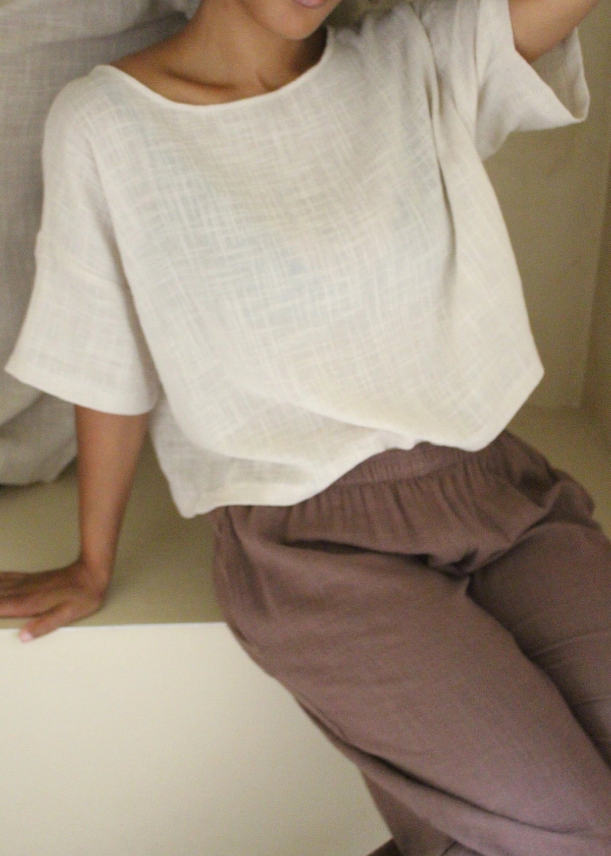 Robyn Waffled Cotton Top - Natural