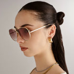 A bold take on a timeless classic, these sunglasses redefine the aviator silhouette with vintage-inspired proportions and elevated detailing. Designed for both style and function, this luxurious aviator frame features premium metal construction, refined hardware and a modern lens shape for a statement-making look.