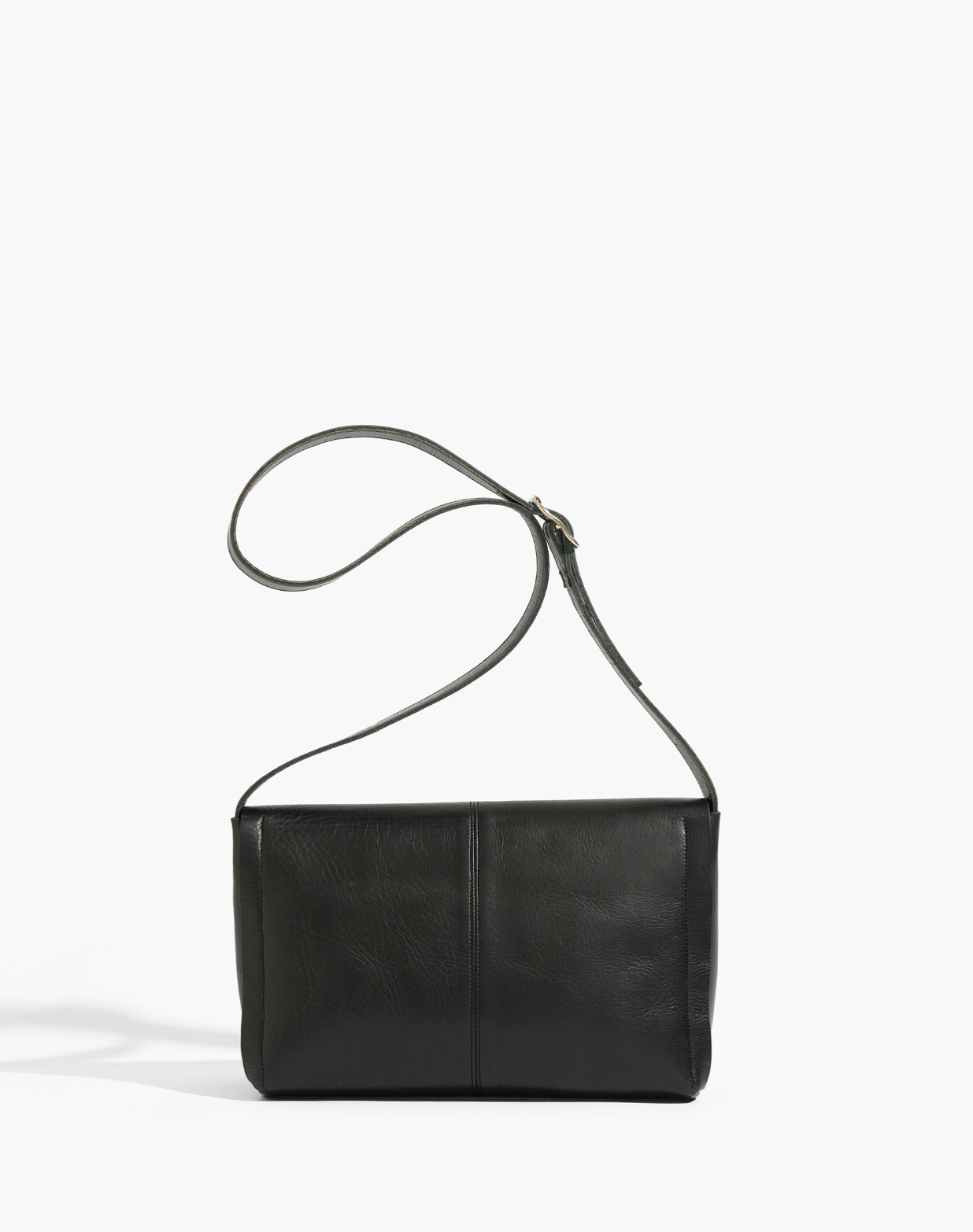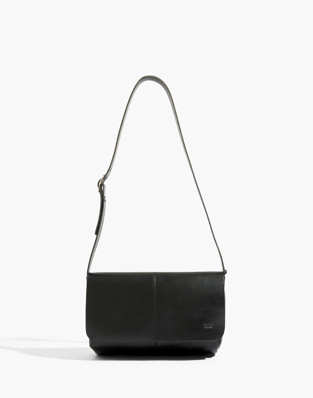 Crafted from smooth, vegetable-tanned natural leather, this crossbody bag features a top flap closure with a contrasting grainy leather lining, a small embossed ‘NIMES’ logo, an adjustable leather strap, and an internal pocket with a leather interior.