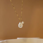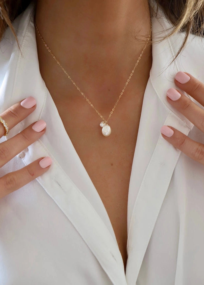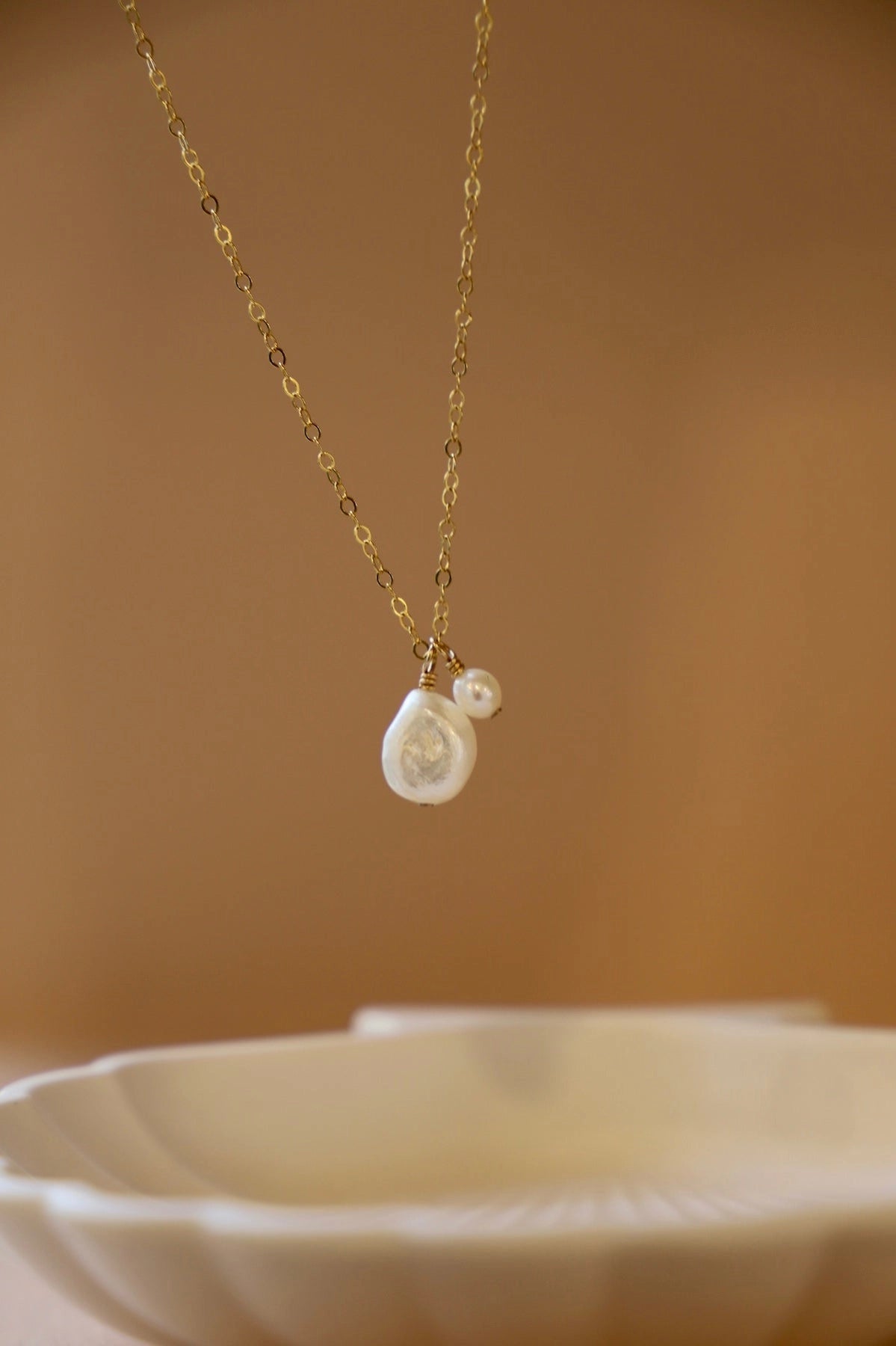 The Double Pearl Drop Necklace is a modern twist to classic pearl styles. The organic shape and sizes are unexpected and eye-catching. Each necklace is unique due to the nature of organic pearls! Wear alone or in your everyday necklace stack.