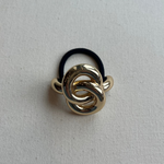 This Eternal Loop Hair Tie in gold features a unique, timeless design that adds elegance to any hairstyle.