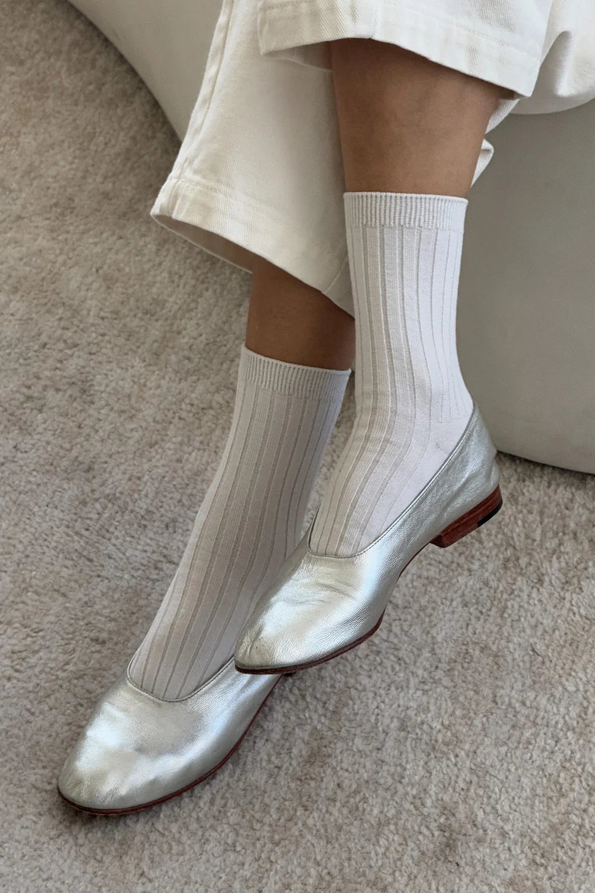 These classically ribbed, perfect height socks are made of a breathable cotton blend yarn. They will pair with any shoe, sandals, sneakers, mules, clogs, boots, and become  your go to sock!