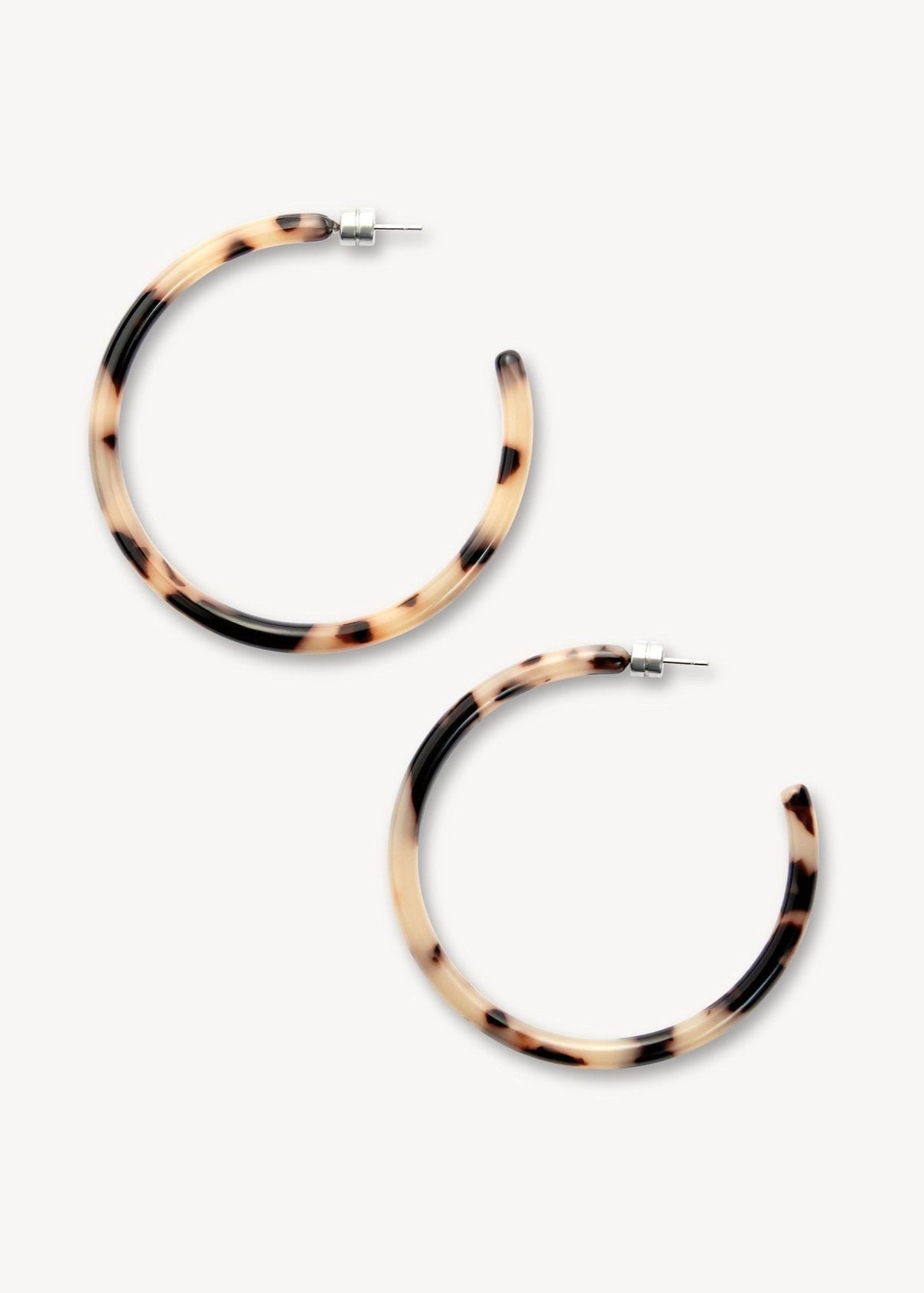 Oversized hoop earrings made from lightweight Italian acetate with engraved barrel backings.