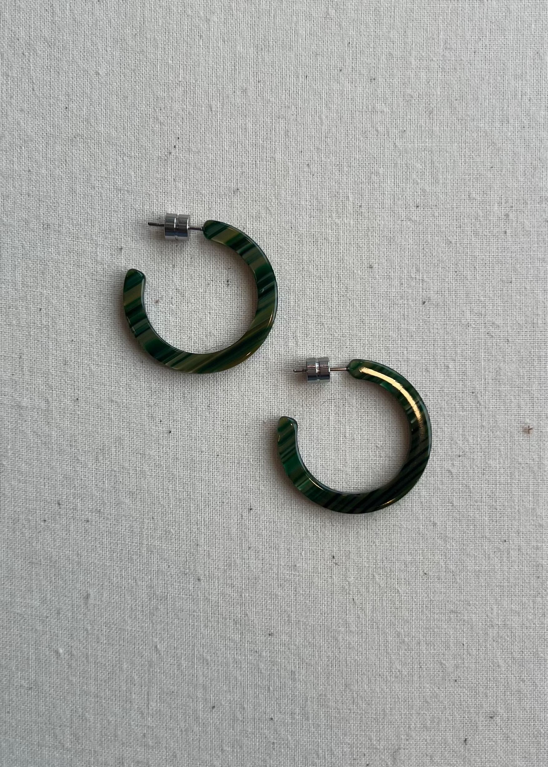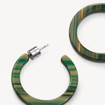 Hoop earrings made from lightweight Italian acetate with engraved barrel backings.
