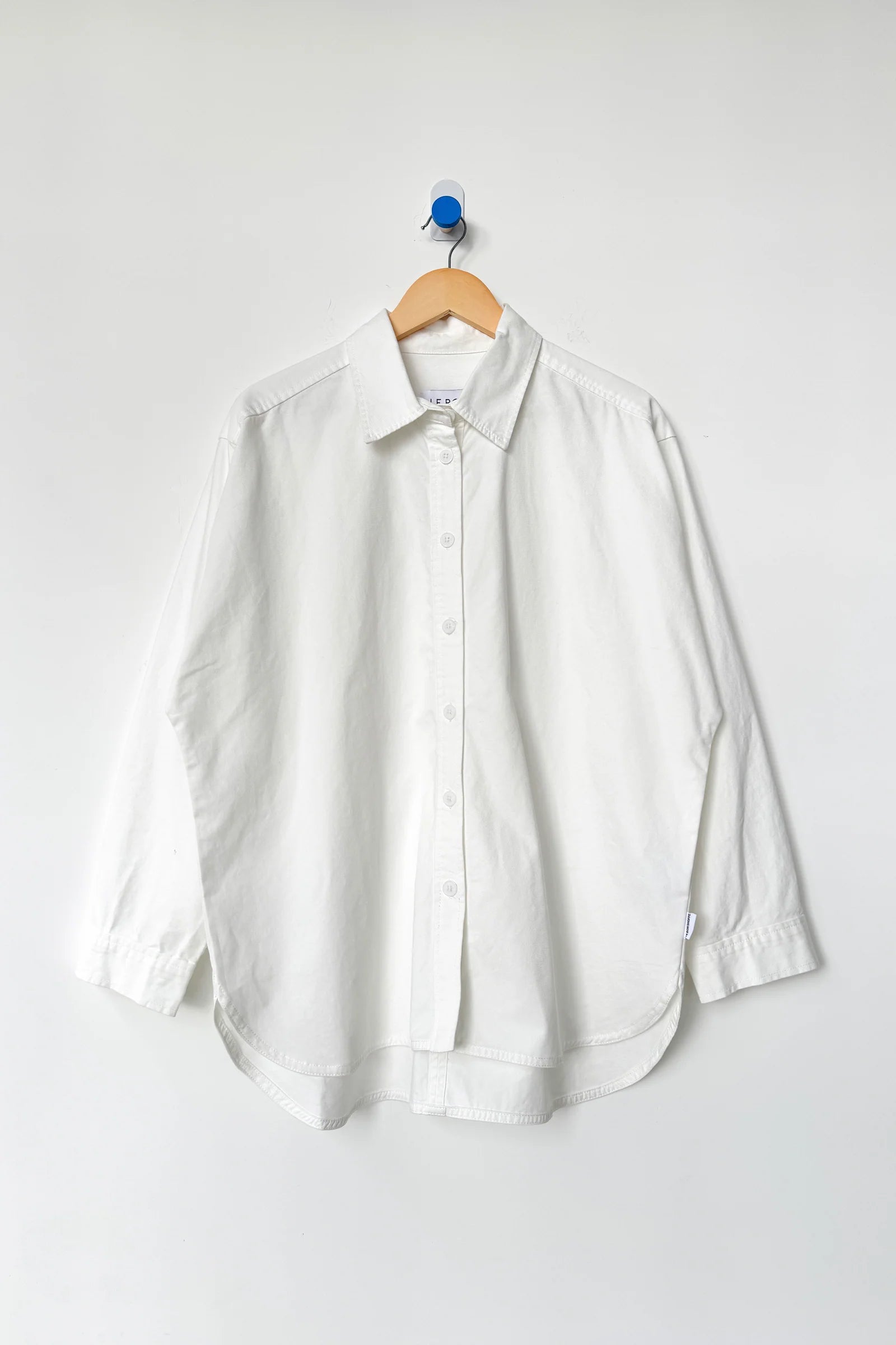 The classic denim shirt, reimagined. It fits like the perfect vintage '90s piece—slightly oversized and relaxed for easy layering, or wear it as a lightweight jacket. Made from 100% heavy cotton denim, it’s soft yet durable, ideal for both casual and elevated looks. Featuring functional buttons, contrast stitching, and a classic rounded hem, it's a timeless, versatile wardrobe essential that transcends time.