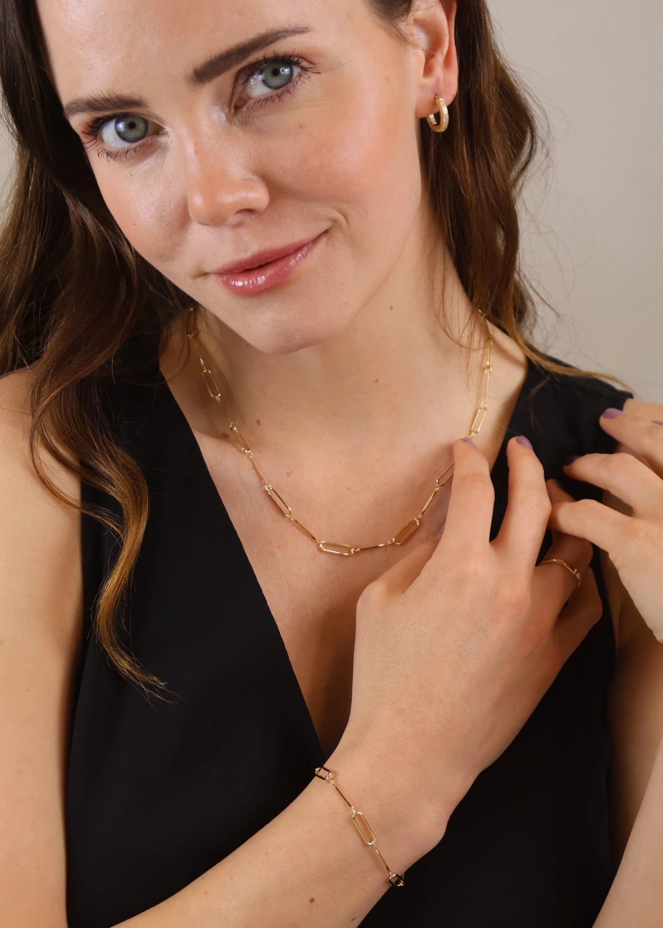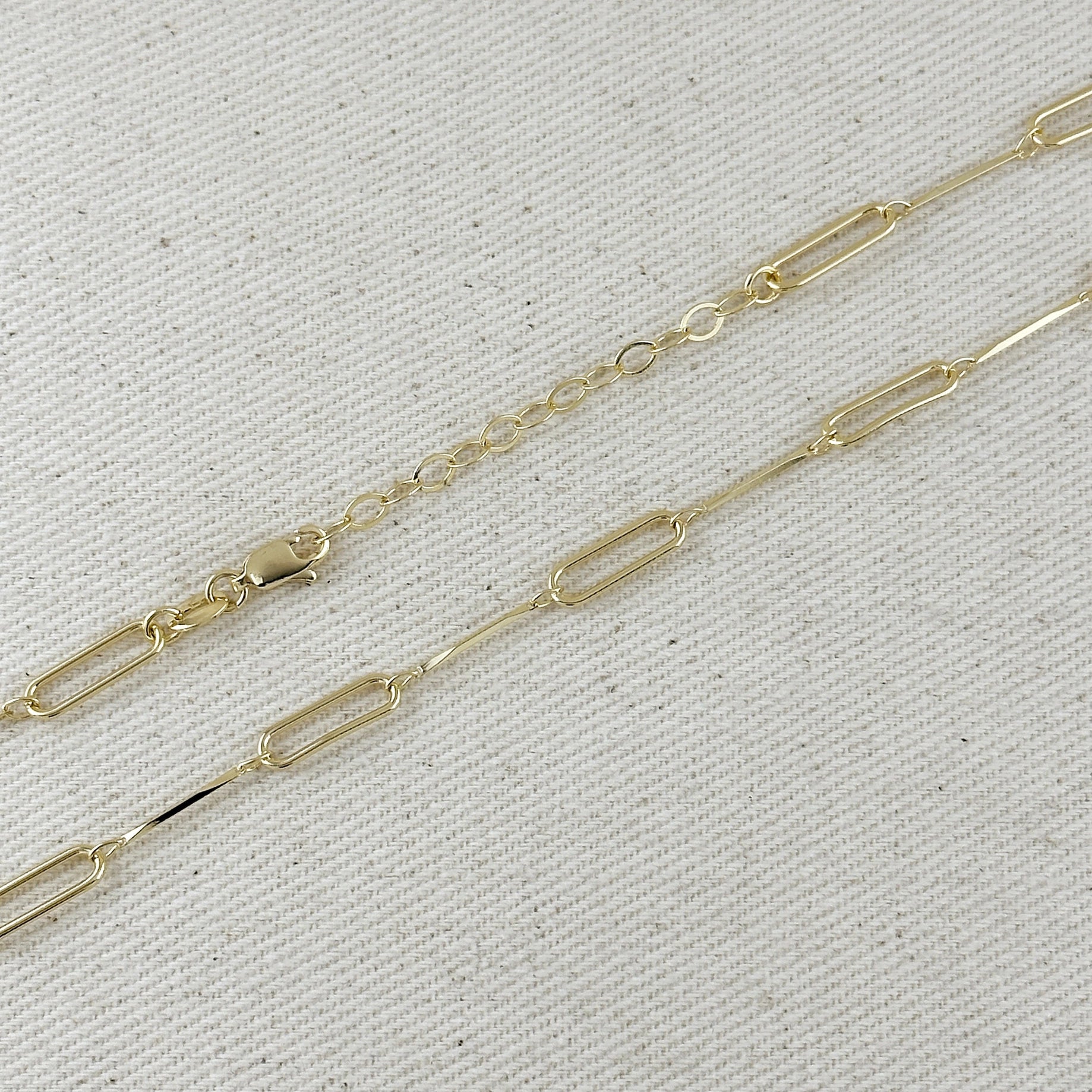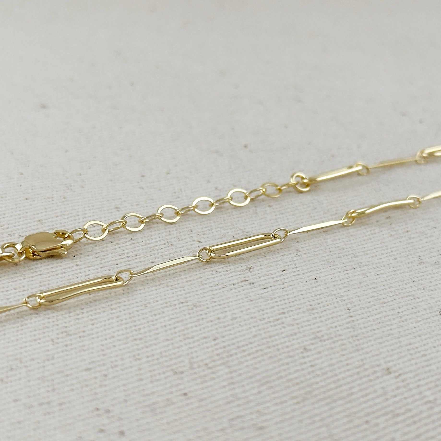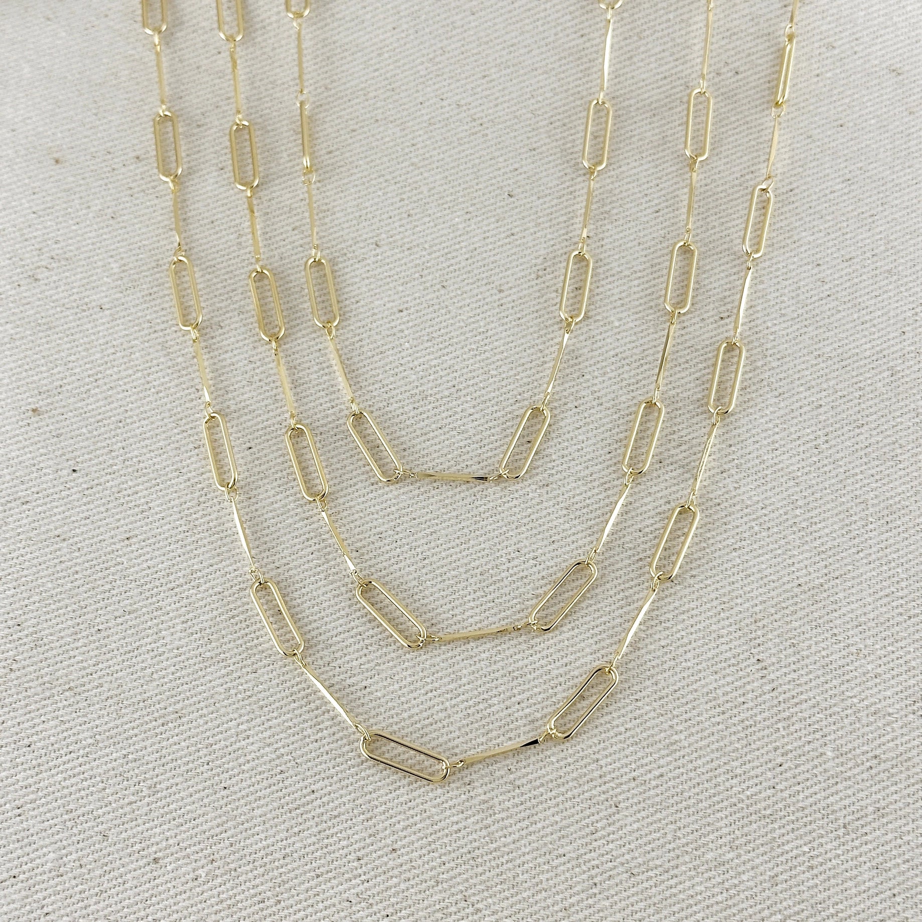 Elevate your accessories with our premium 18k Gold Filled Paperclip & Straw Chain. This versatile design alternates between elongated paperclip links and smooth straw segments, creating a contemporary yet timeless look. Perfect for everyday wear or special occasions, this chain can be styled alone as a statement piece or layered with other necklaces for a customized look.