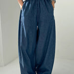 Billowy pants made to move with you throughout the day. Crafted from a light yet durable and elevated cotton, they're the kind of pair you can wear anywhere, from casual moments to polished looks. Designed with an elastic waist and side pockets, their unique leg shape sets them apart. A third side panel adds extra volume, creating a sculptural silhouette that’s relaxed, airy, and full of movement.