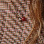 This mixed metal delicate necklace features a refined La Homme chain on a smaller scale, accented by a metal bead and a gemstone bead.