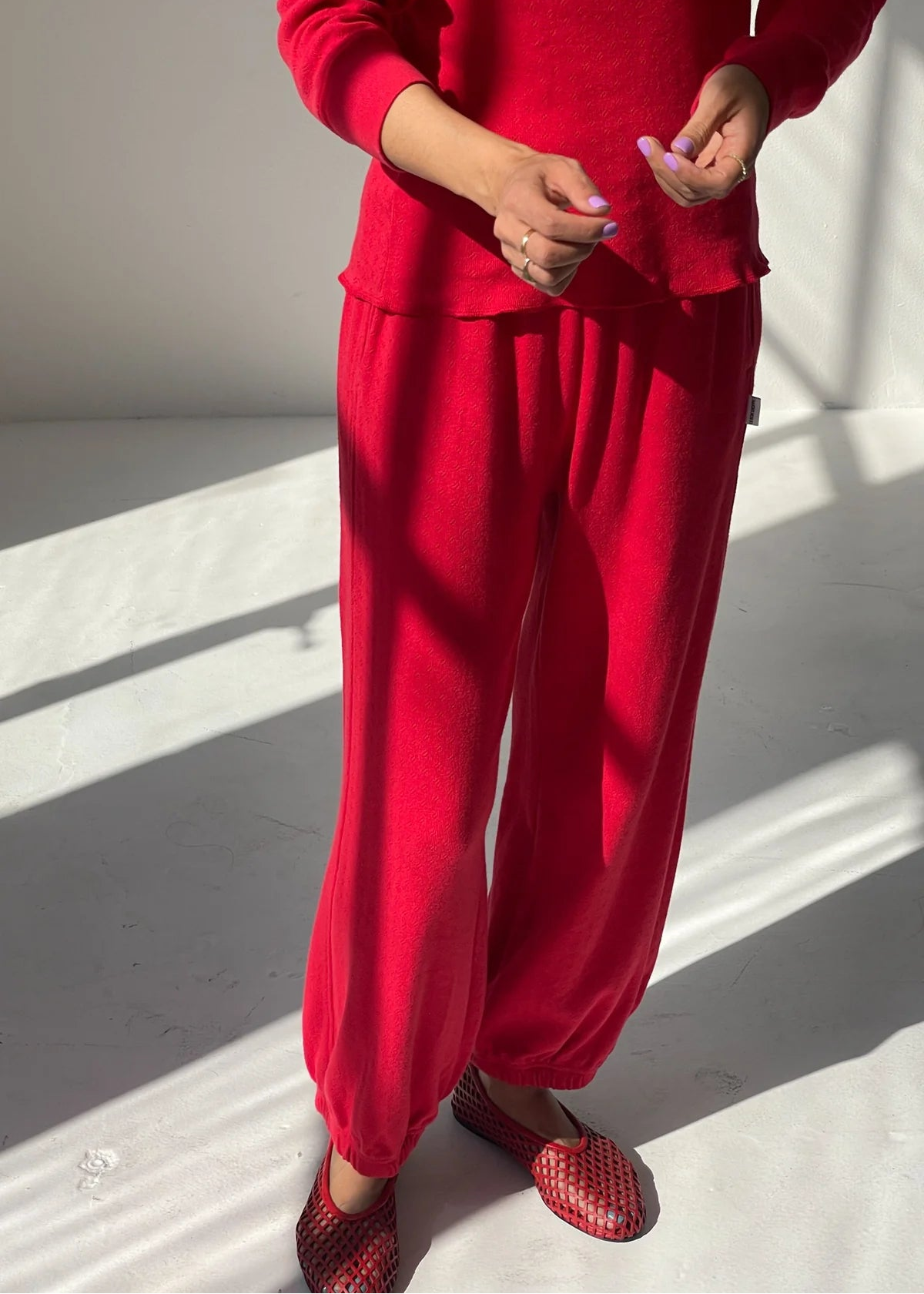 Made from ultra-soft cotton pointelle jersey, these dreamy balloon parts are soft to the touch with a gentle drape. Designed with an easy elastic high waist, relaxed fit, and gathered ankles that play well with any shoe, they’re finished with slimming side panels and hidden slit pockets for just the right balance of comfort and structure. Whether you’re lounging, layering, or stepping out, these pants were made to move with you.