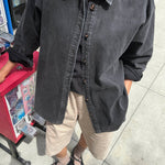 A timeless denim staple, perfect for layering or wearing on its own. Designed with the same relaxed fit as the Owen Shirt, but crafted in a slightly heavier, more durable denim fabric. Finished with an oversized silhouette, functional button front, contrast stitching, and a classic rounded hem.
