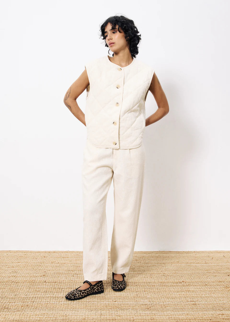 This lovely quilted vest helps transition your wardrobe during shoulder season.