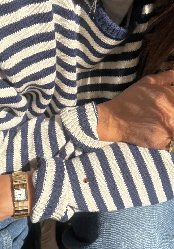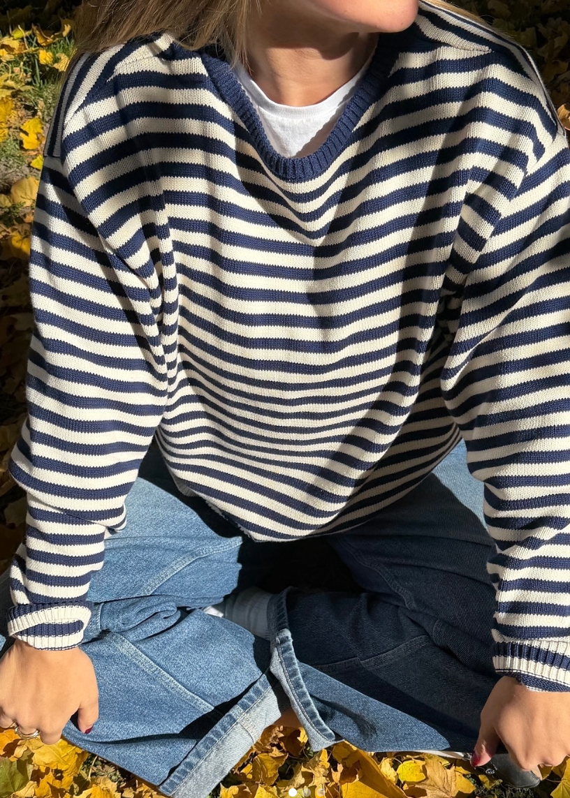 This will be mistaken for a vintage sweater. In the perfect stolen-from-the-back-of-your-dad's-closet fit. Long sleeves with a wide, boxy cut.