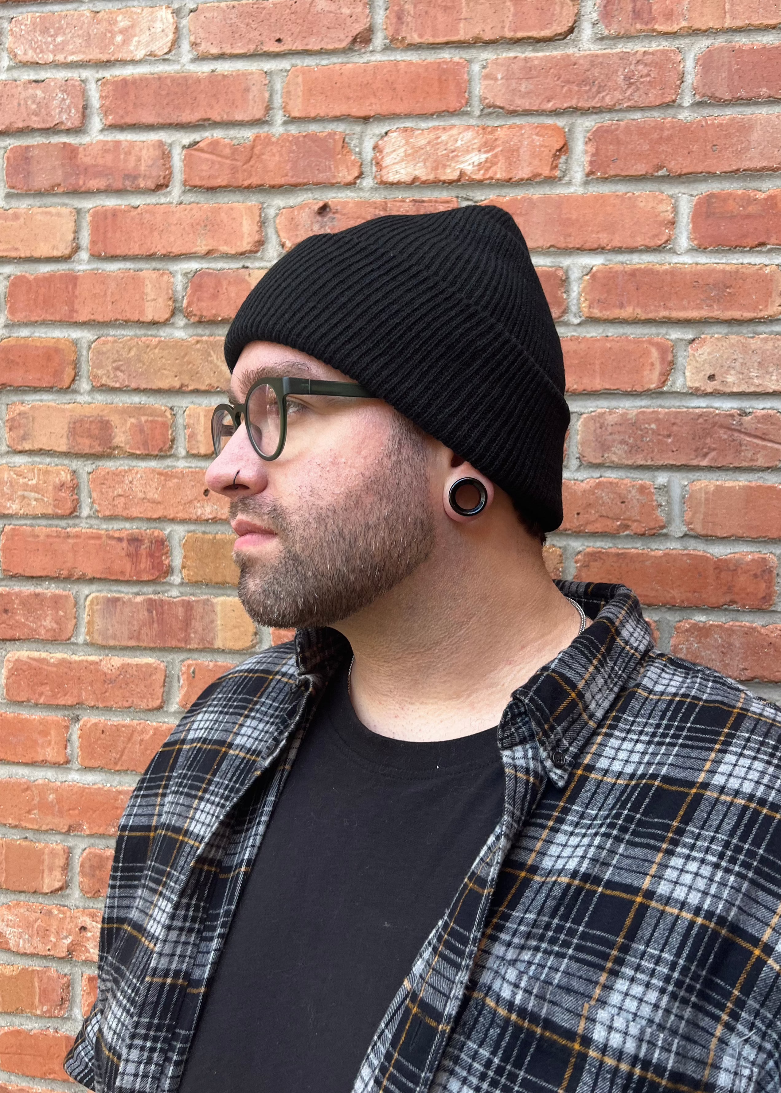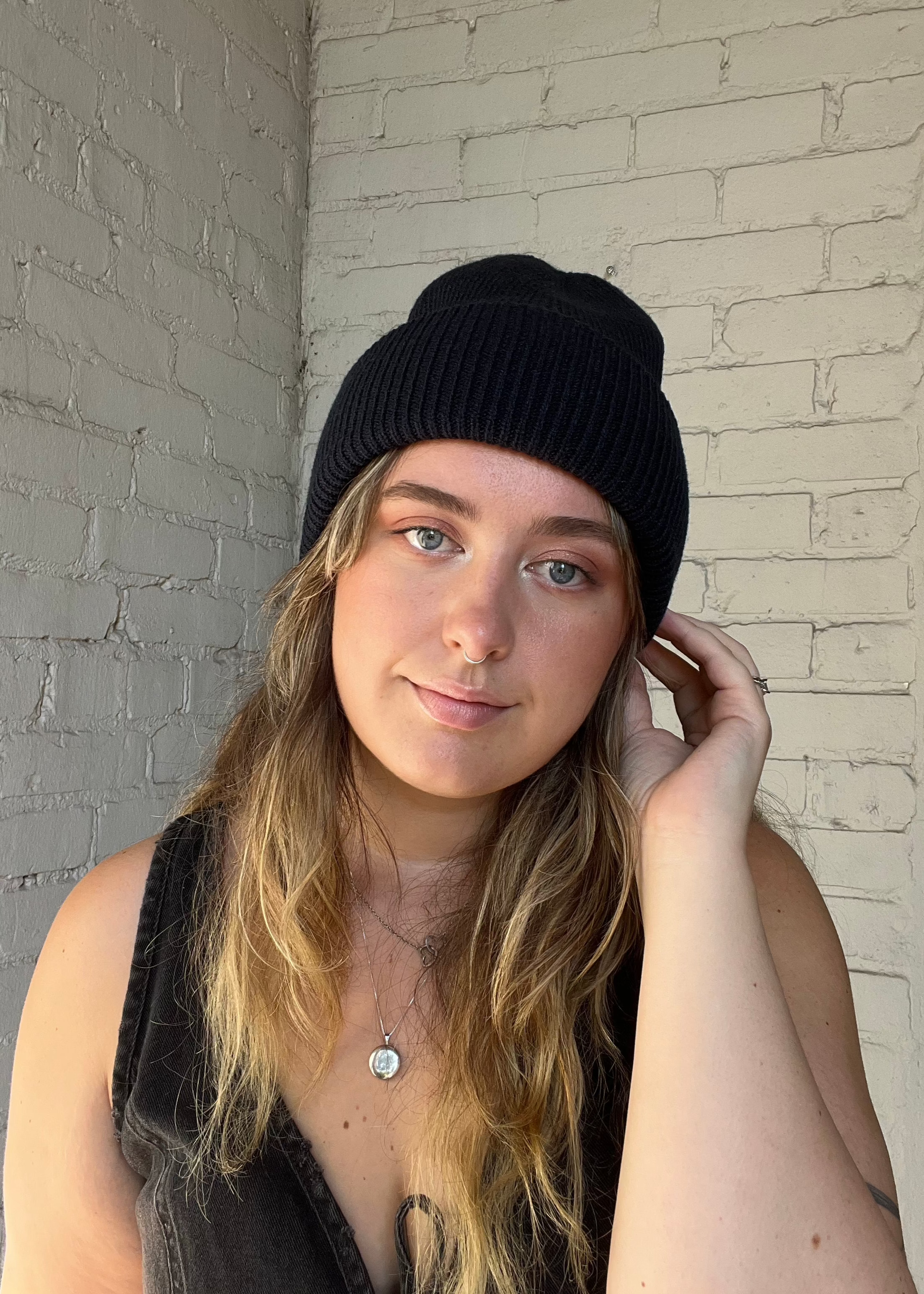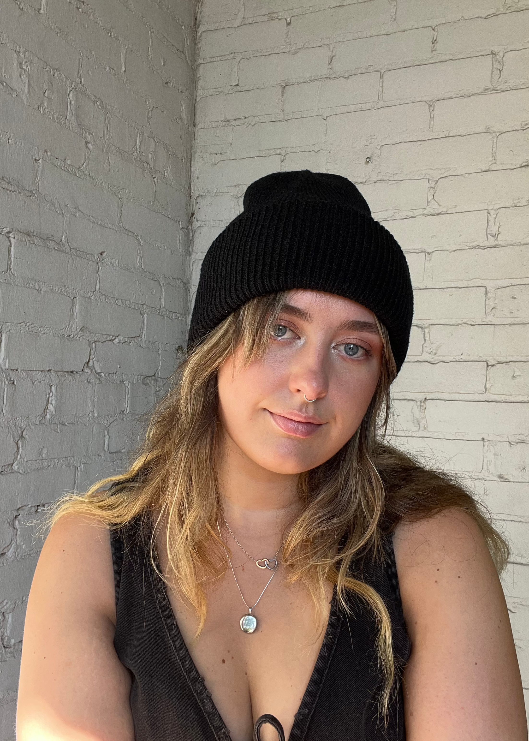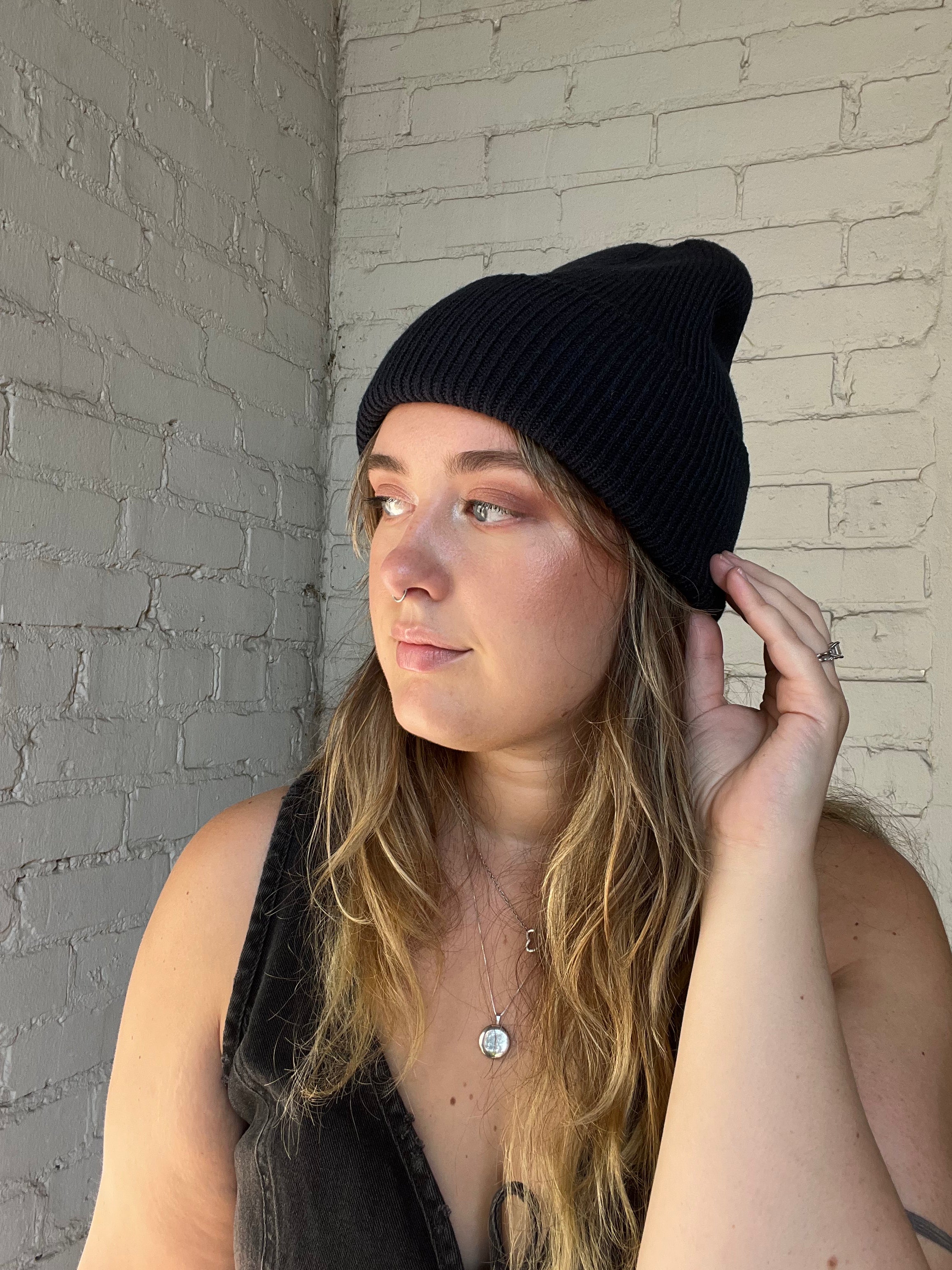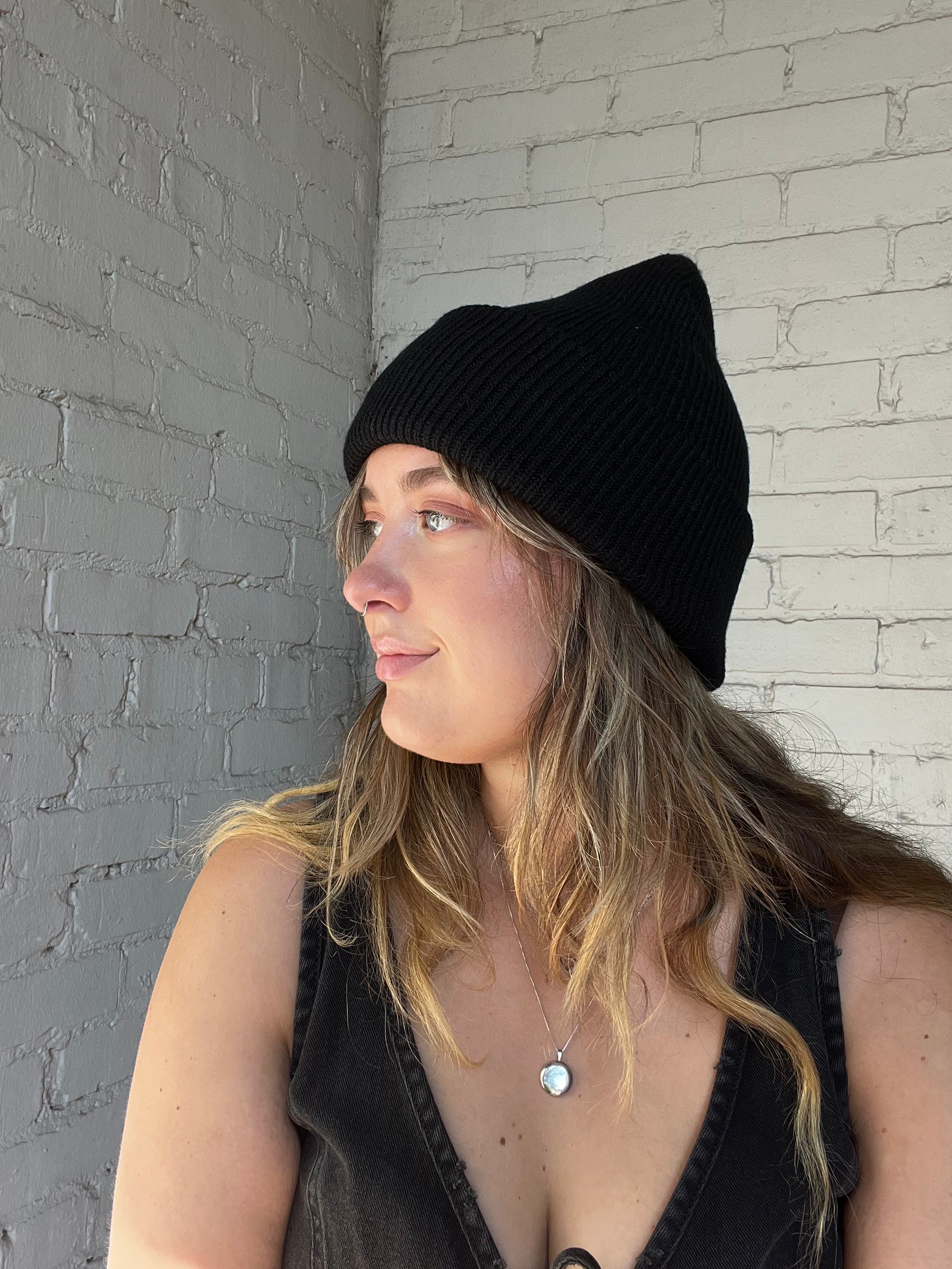 Made from 100% recycled polyester, warm double knit, ribbed.