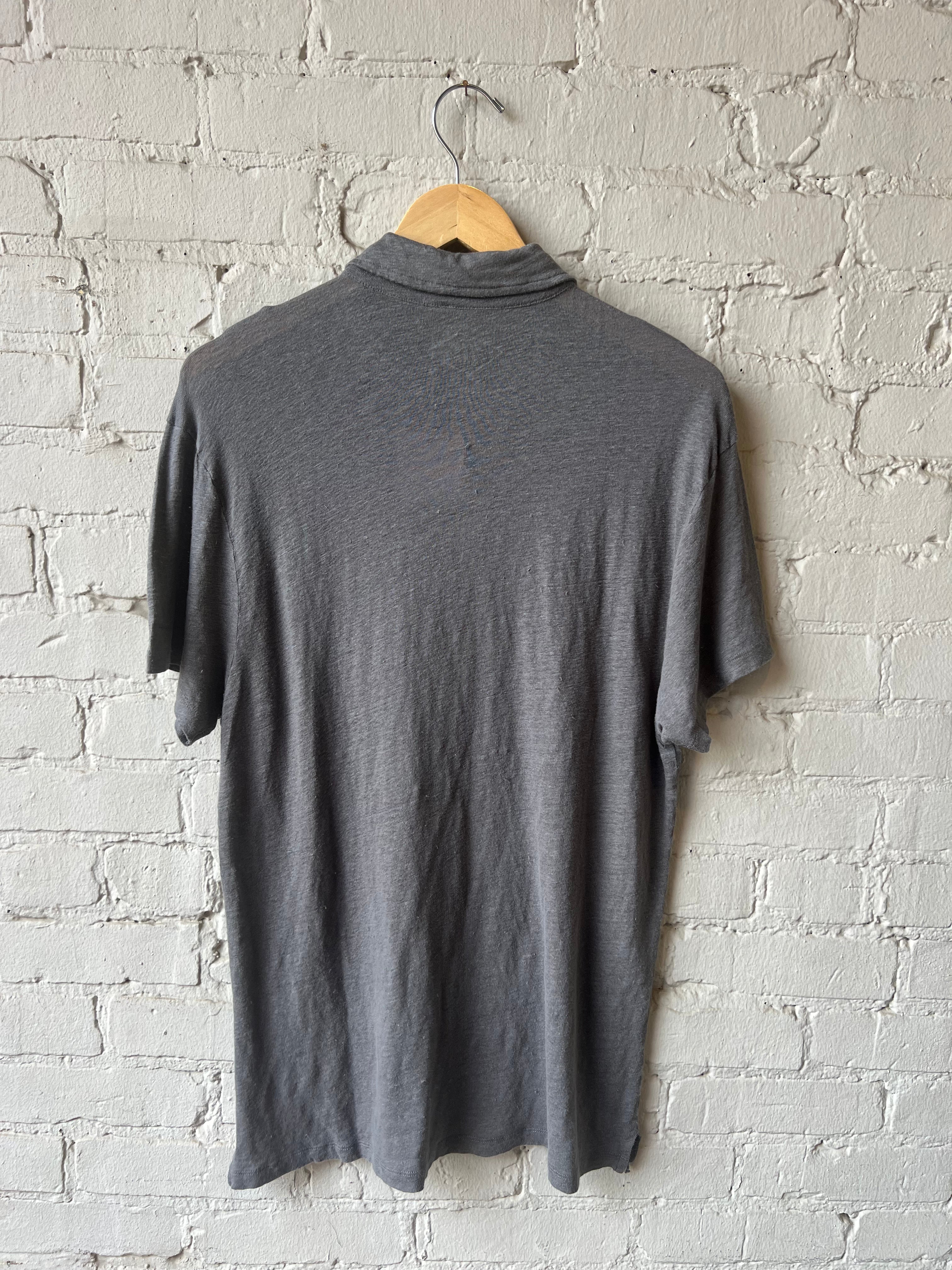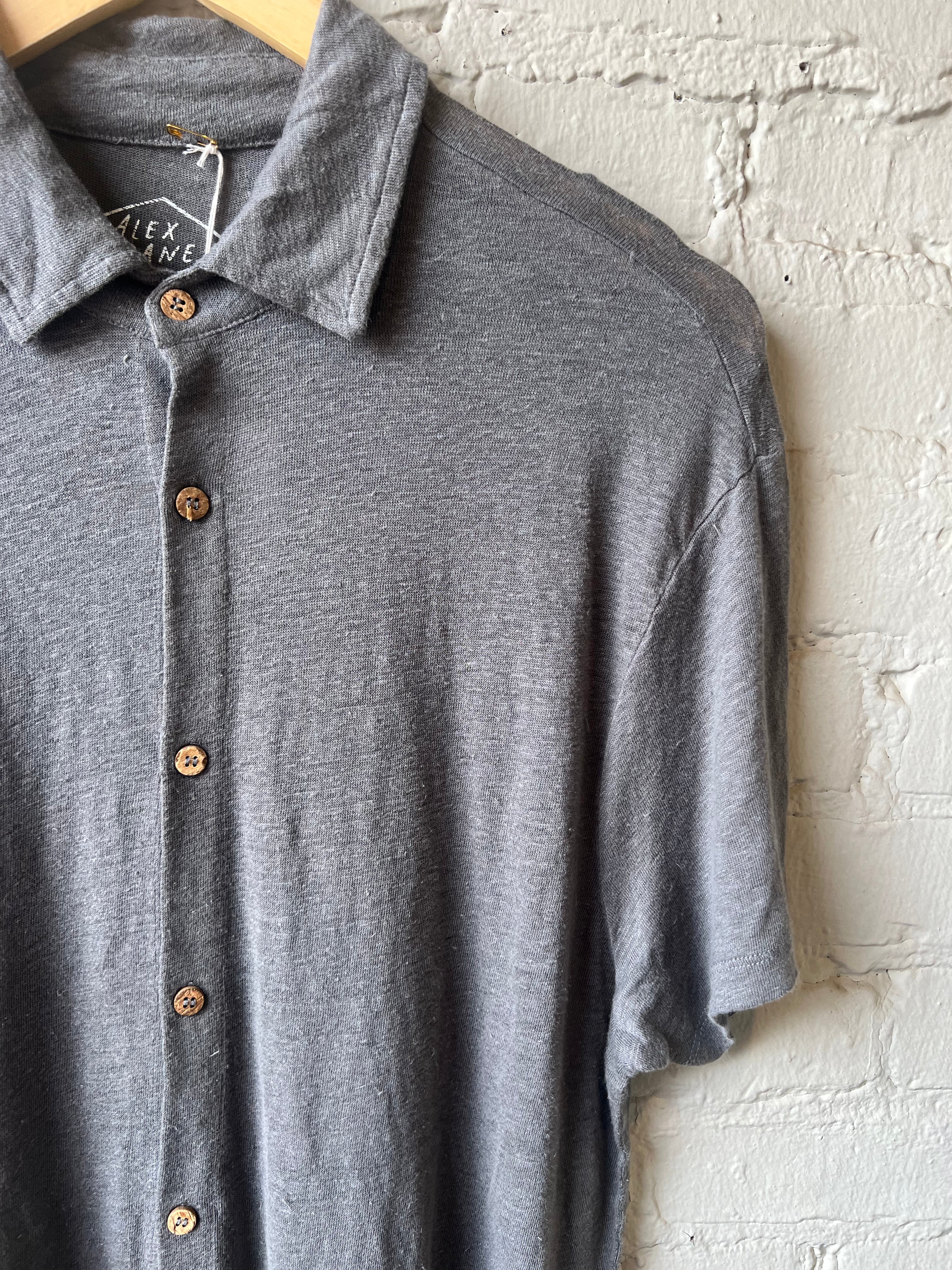 A natural linen short sleeve button-up made with sustainably-grown French linen, coconut buttons, and washed with biodegradable softeners.