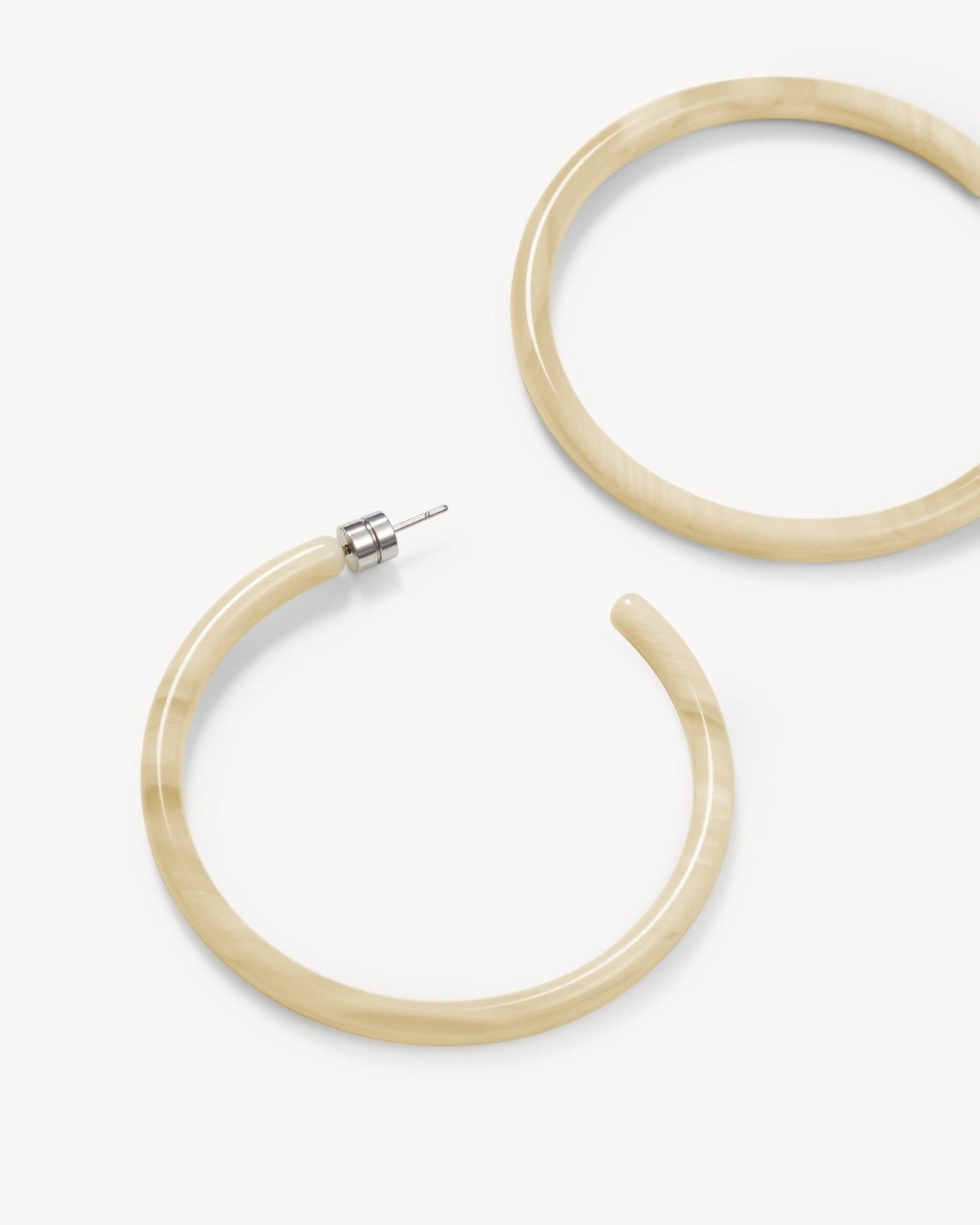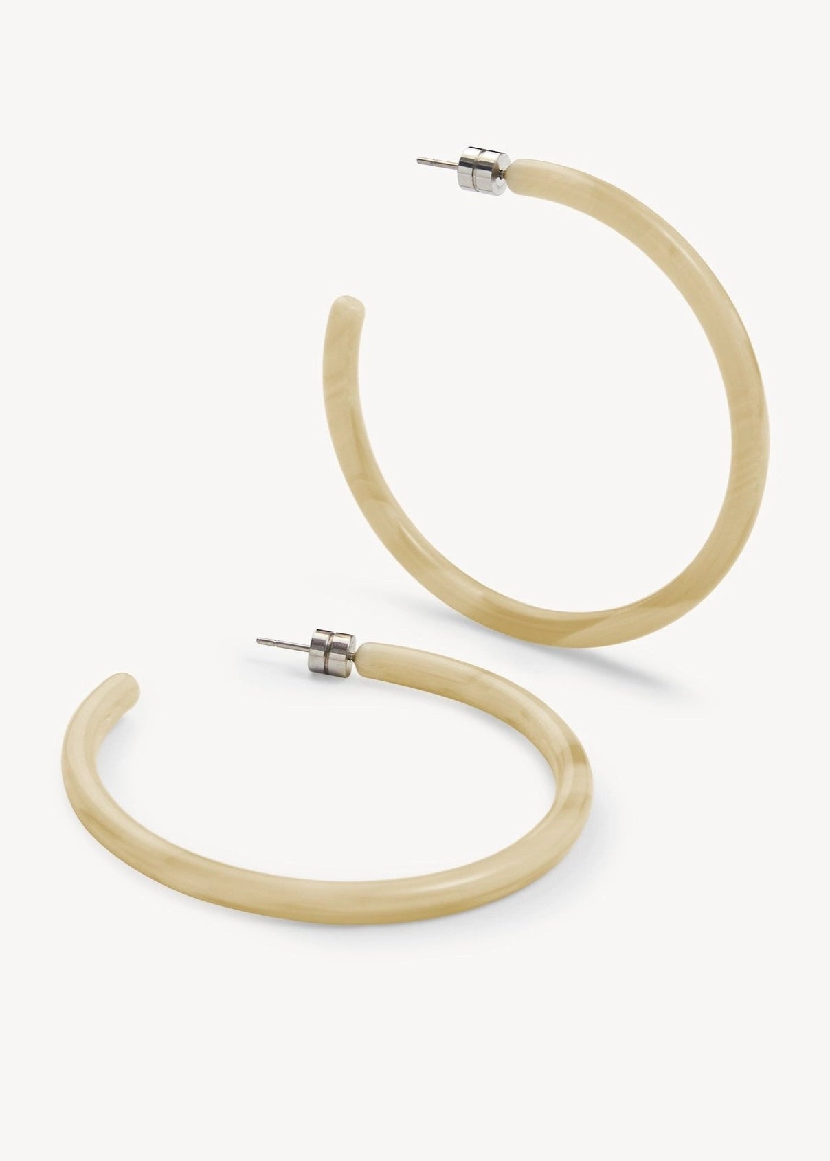 Oversized hoop earrings made from lightweight Italian acetate with engraved barrel backings.