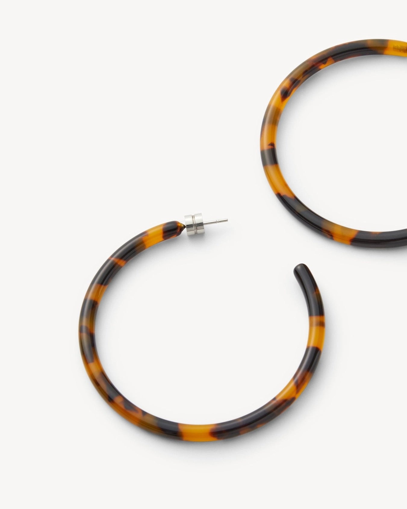 Oversized hoop earrings made from lightweight Italian acetate with engraved barrel backings.