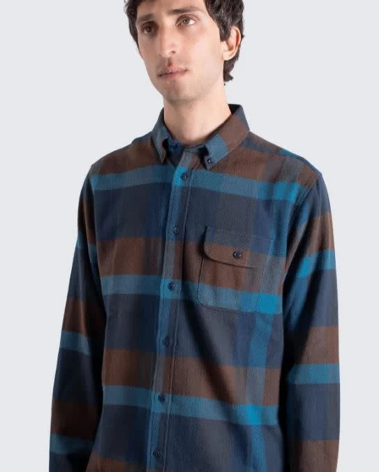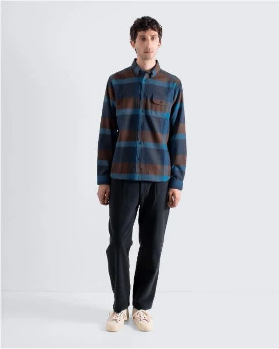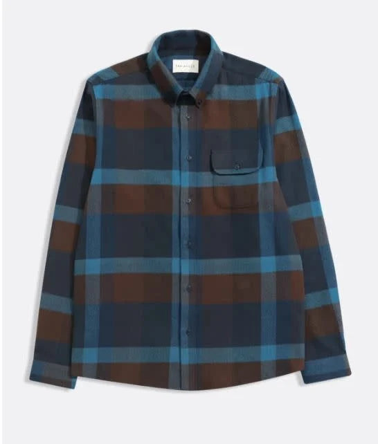 The Larry Plaid Shirt is rooted in outdoors utility and reworked with a sharper silhouette. Cut from mid-weight brushed cotton for warmth and softness, it features a button-down collar, a single chest pocket and a curved hem that gives a clean, easy shape. Timeless and dependable, it’s a shirt you’ll return to season after season.