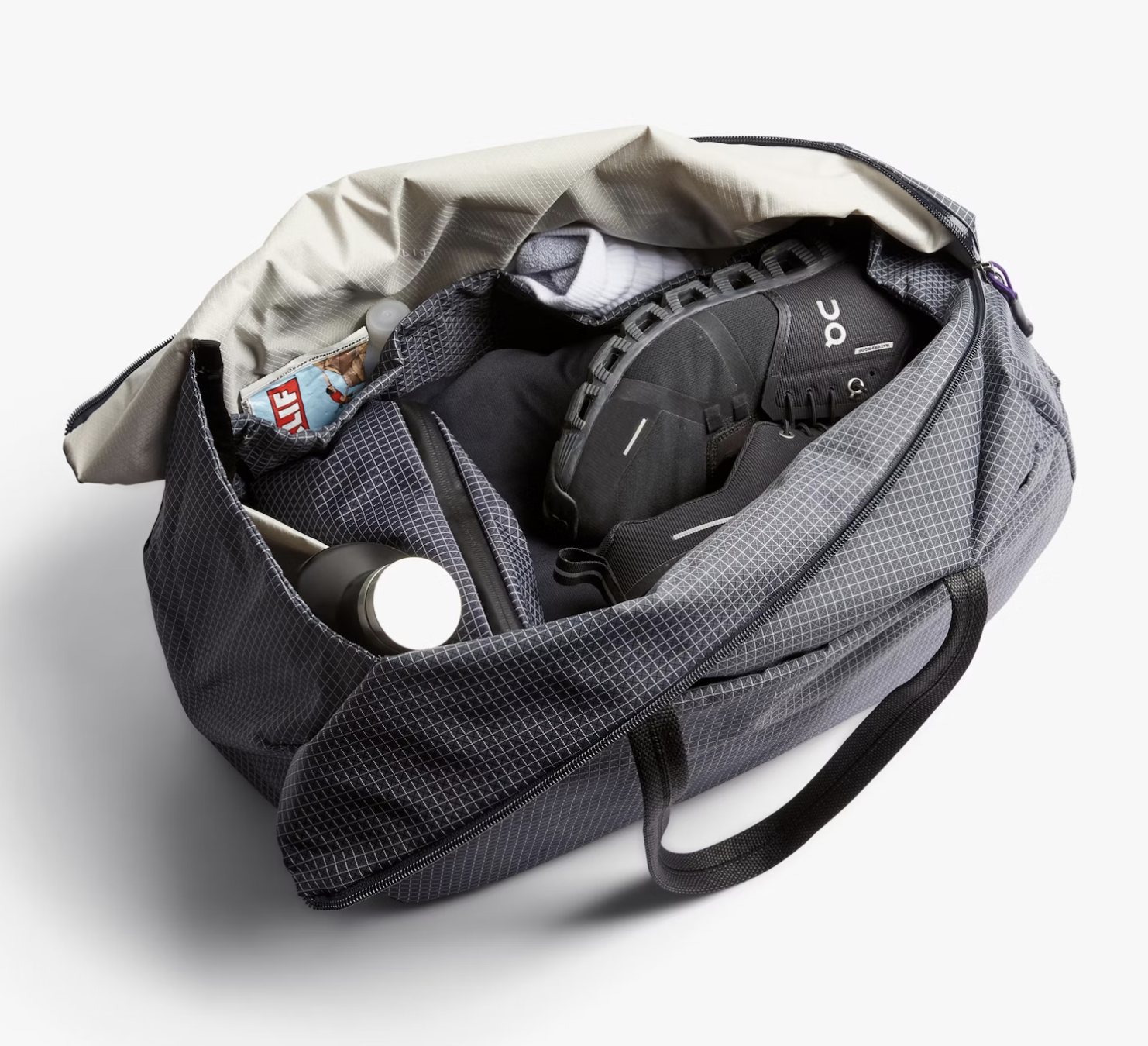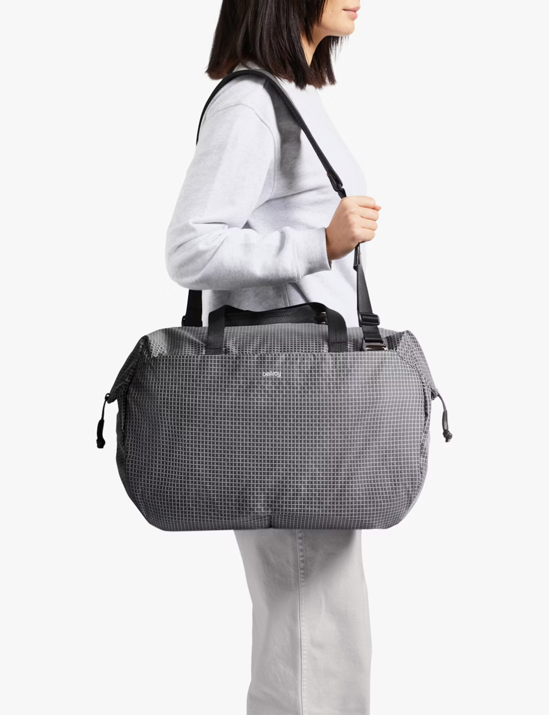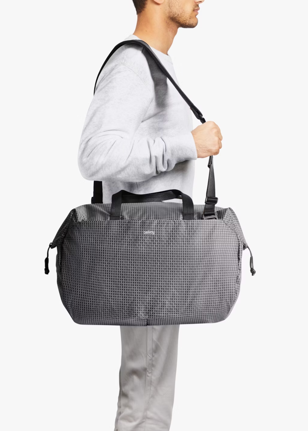 The Lite Duffel in Black is perfect for travel and play. With ultralight ripstop fabric and a reinforced rim, it's durable and easy to pack. The spacious main compartment and multiple zip and slip pockets provide convenient organization. The adjustable shoulder strap and grab handles make for easy carrying. Water-resistant zipper with easy-grab pulls.
