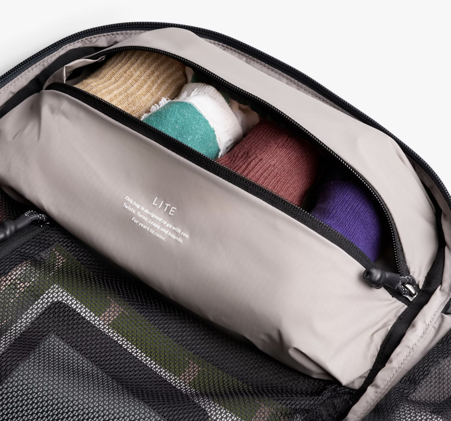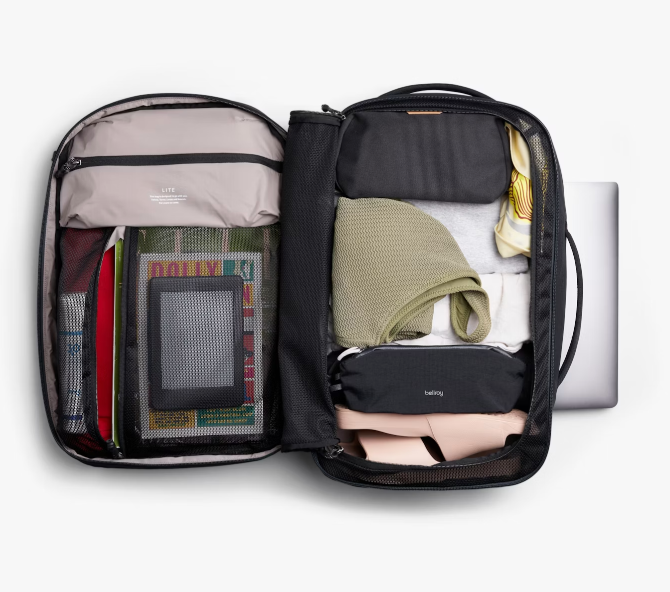 Effortlessly pack for any trip with the Lite Travel Pack 30L in black. Tuck-away shoulder straps, multiple pockets, and mesh dividers make organization a breeze. The Dura Lite Nylon material ensures durability. With a quick-access top pocket for essentials and a laptop pocket for up to 16" laptops, this pack has everything you need for stress-free travel.