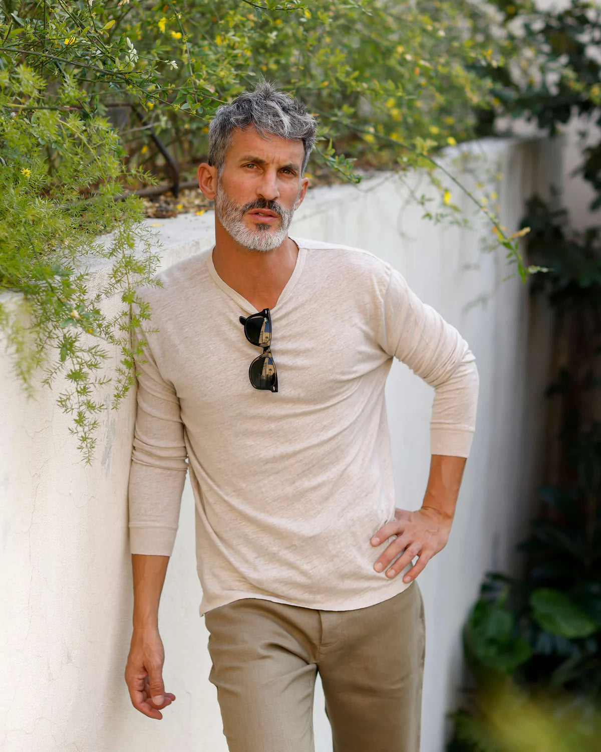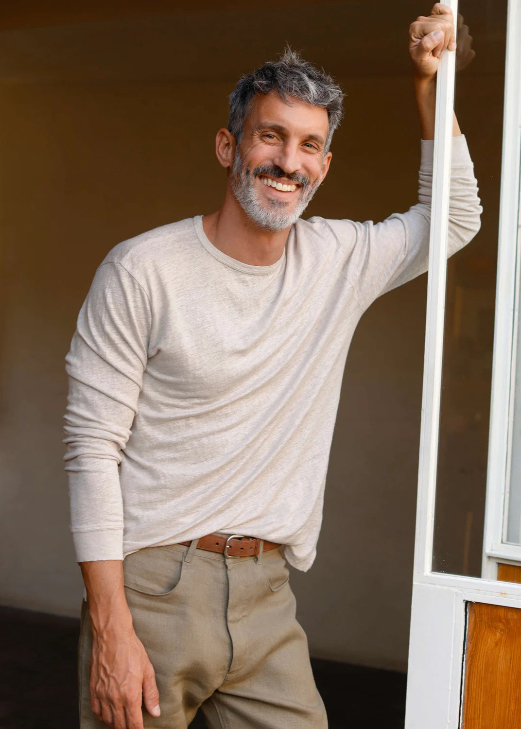 A natural linen long sleeved t-shirt made with sustainably grown French linen, knit in Portugal and washed with biodegradable softeners.