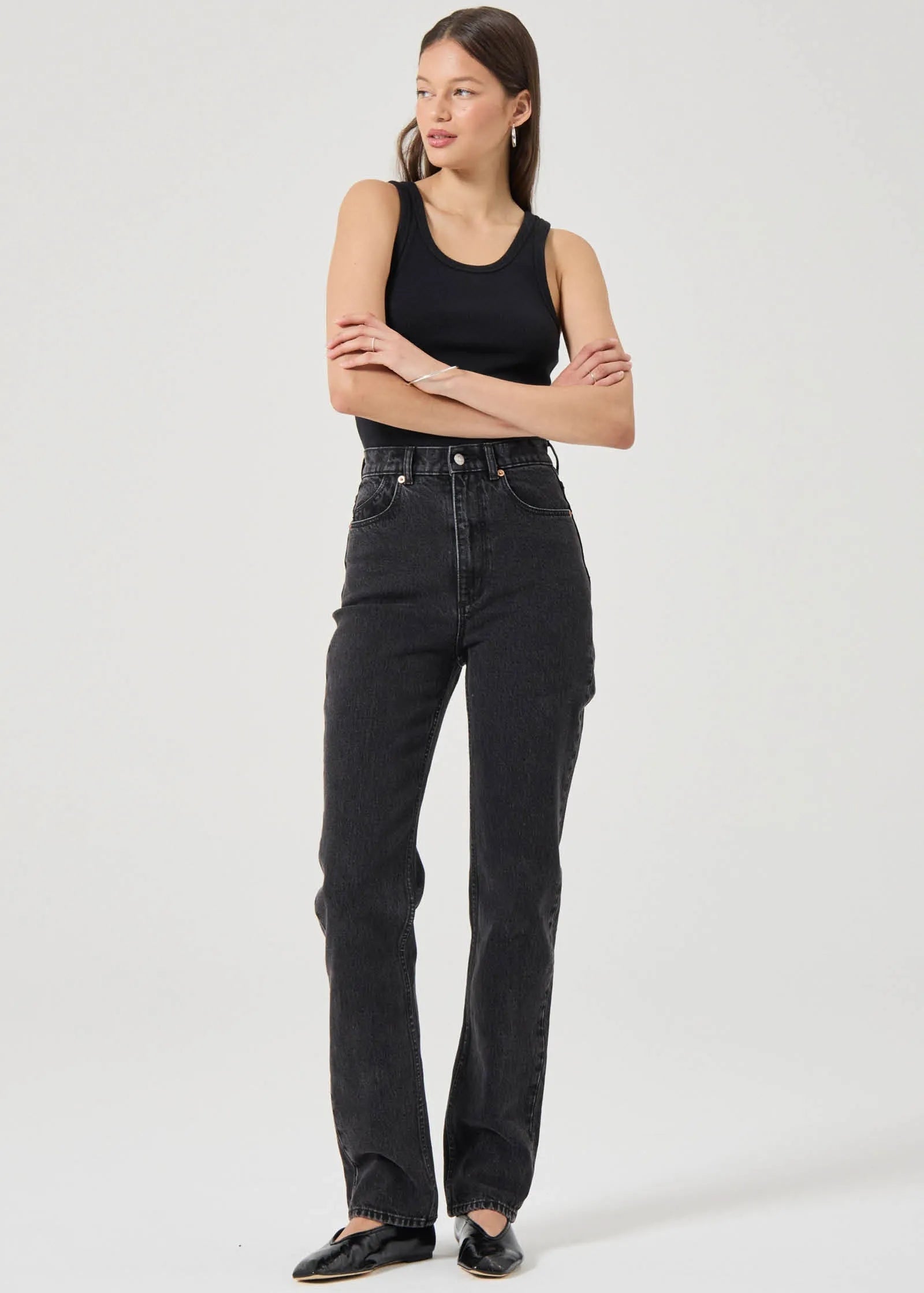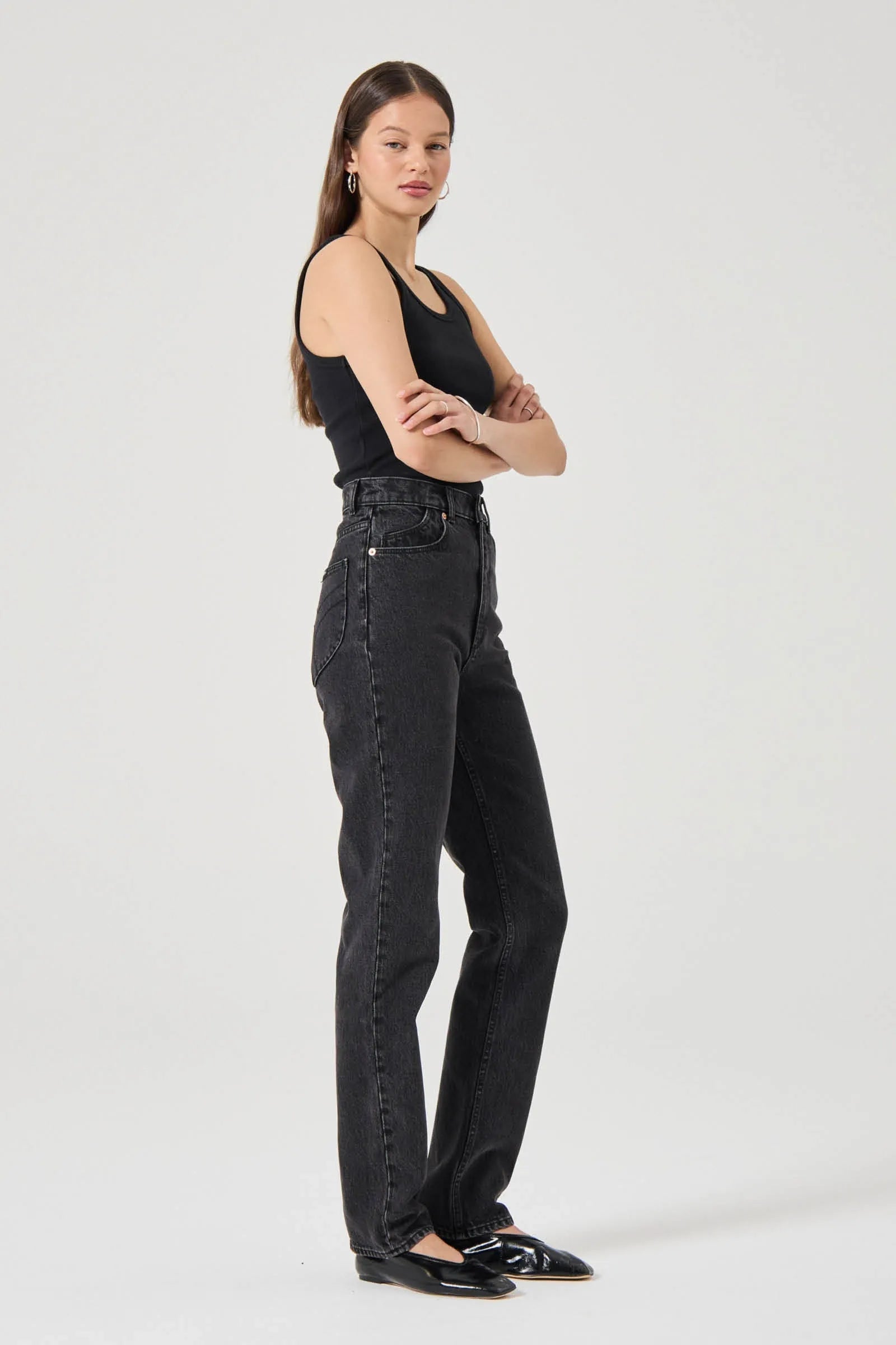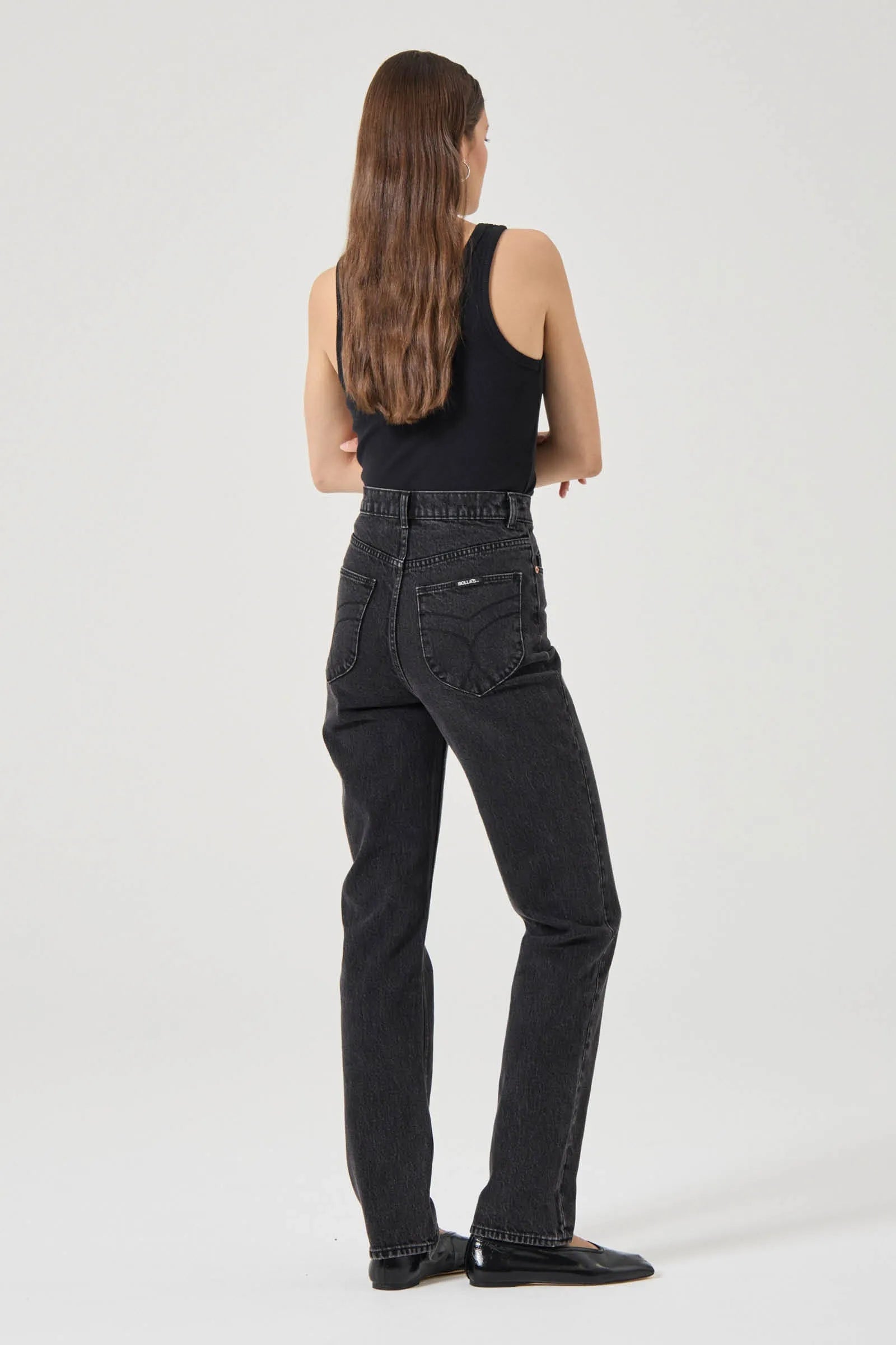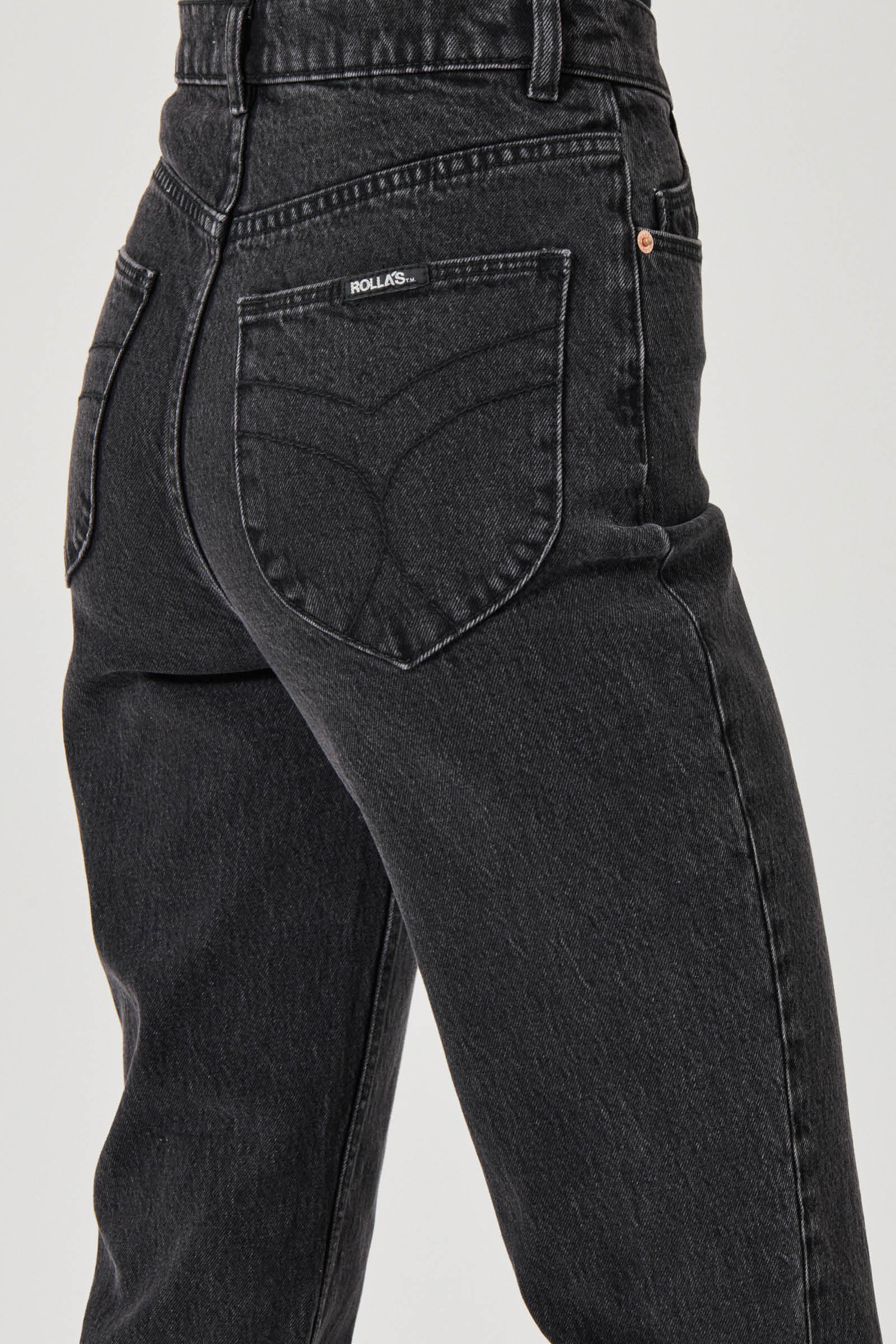 A high-rise jean with a slim straight leg, slightly relaxed through the seat and angled for a peachy fit. Made from comfort denim—slightly lighter than rigid denim with a touch of stretch—this style keeps its shape and requires minimal break-in. Finished with Rolla’s vintage trims, signature back pocket stitching, a zip closure, and long legs.