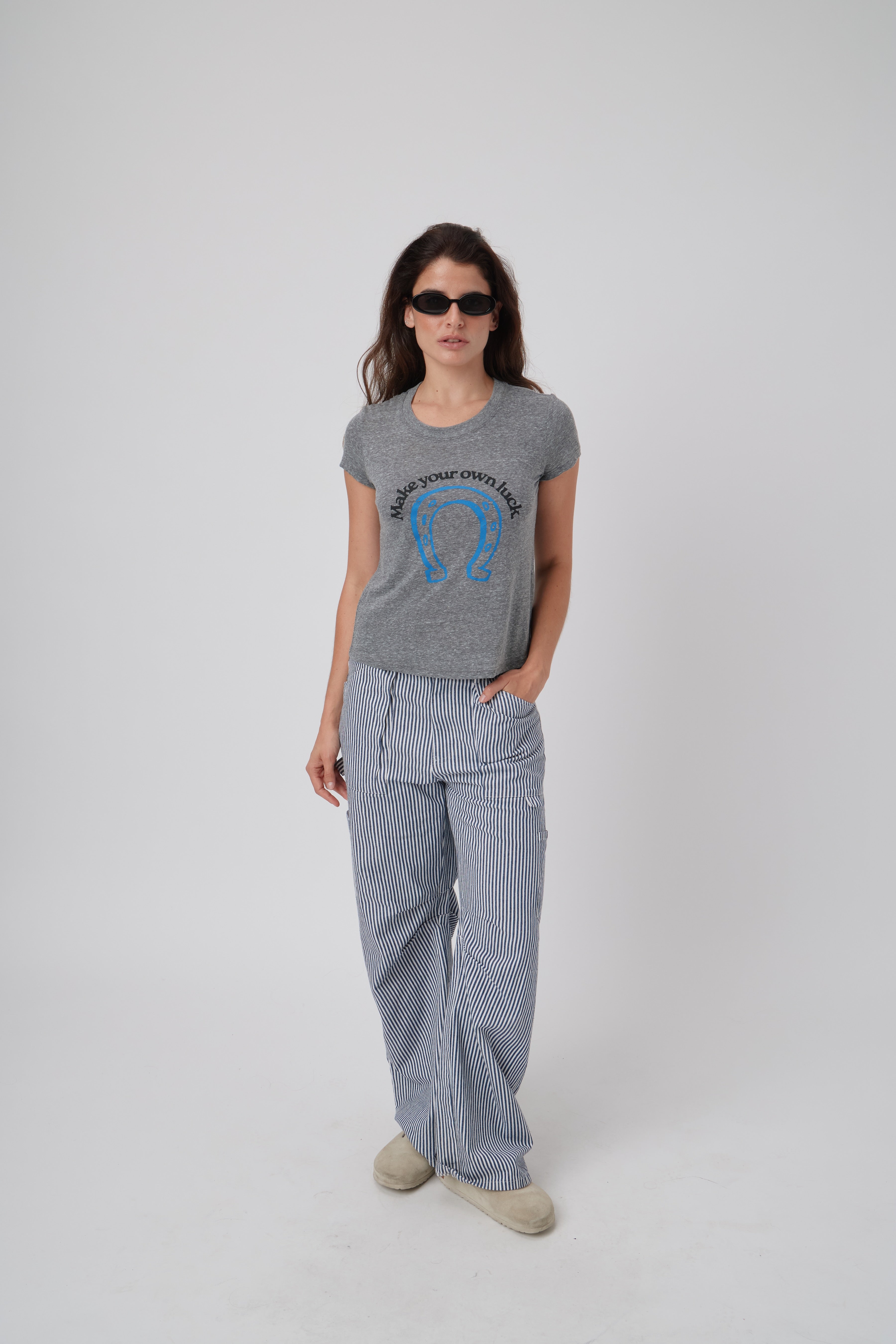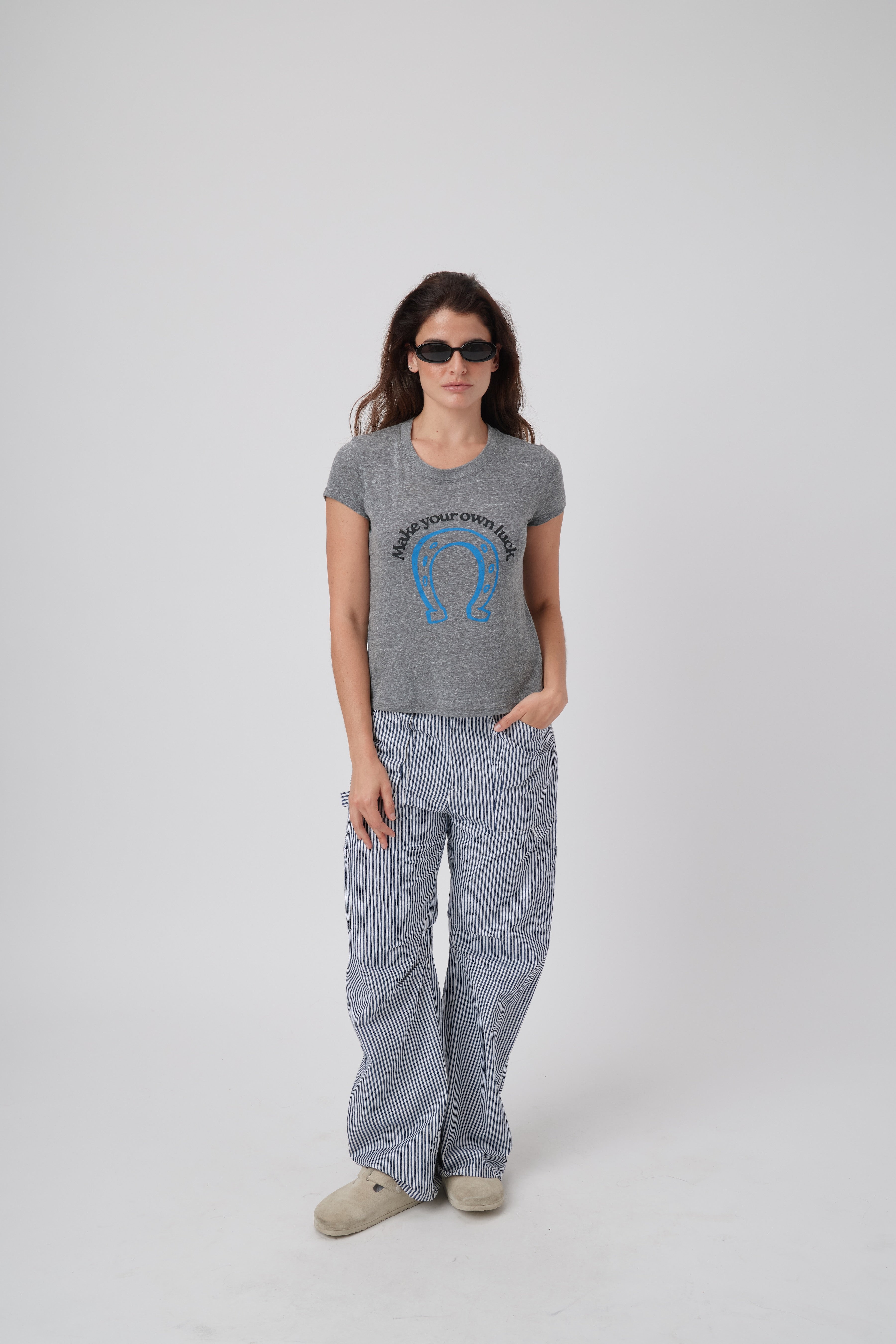Crafted with a soft heather grey fabric, our Make Your Own Luck Tee is the perfect addition to your wardrobe. The classic tee design offers versatility for any occasion, while the comfortable material ensures all-day wear. Show off your laid-back style and embrace the power of creating your own luck.