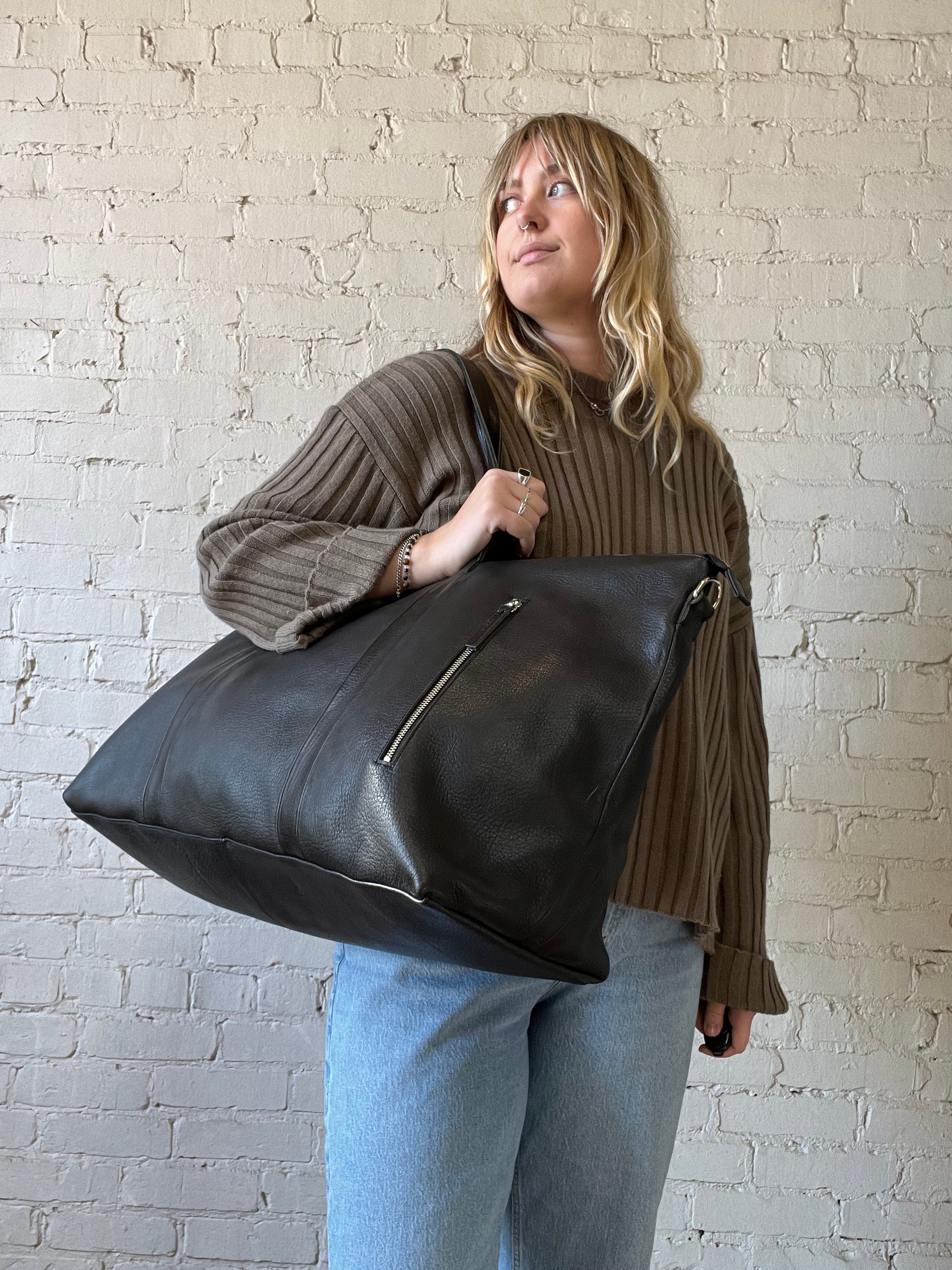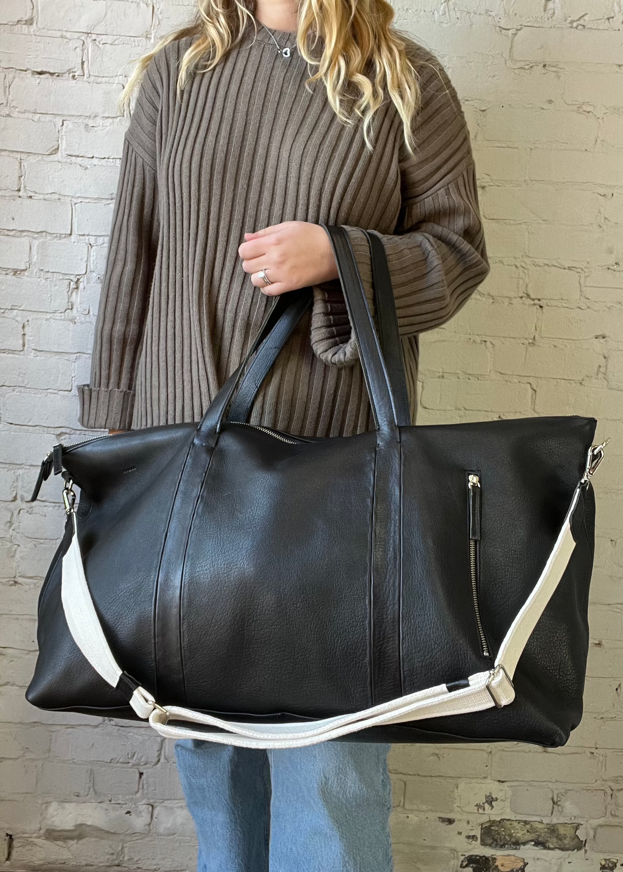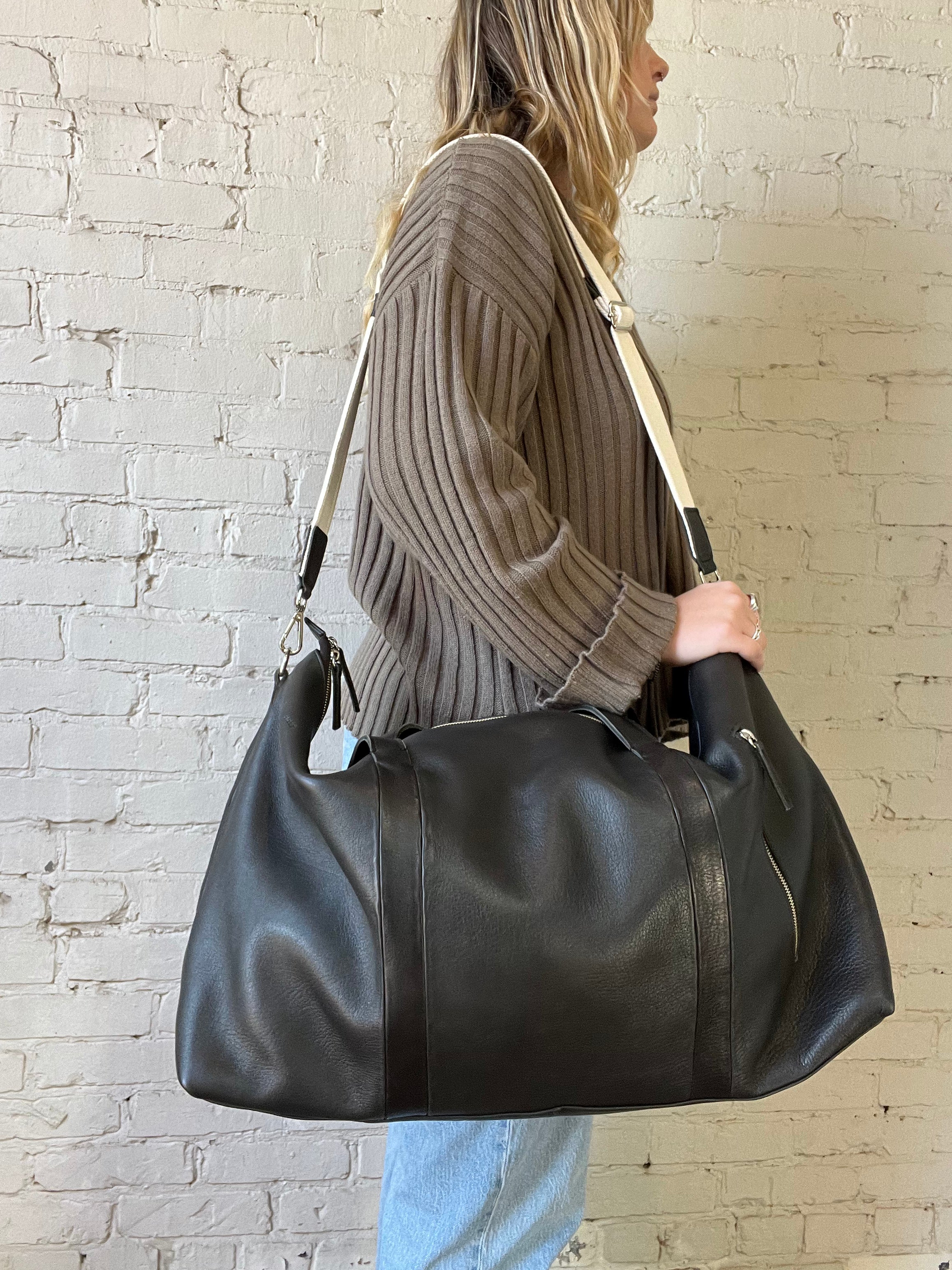 Malbec Weekend Bag - Black/ Leather Strap