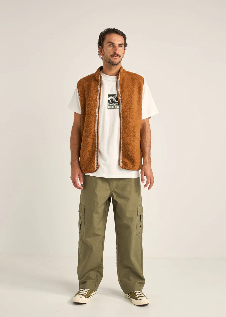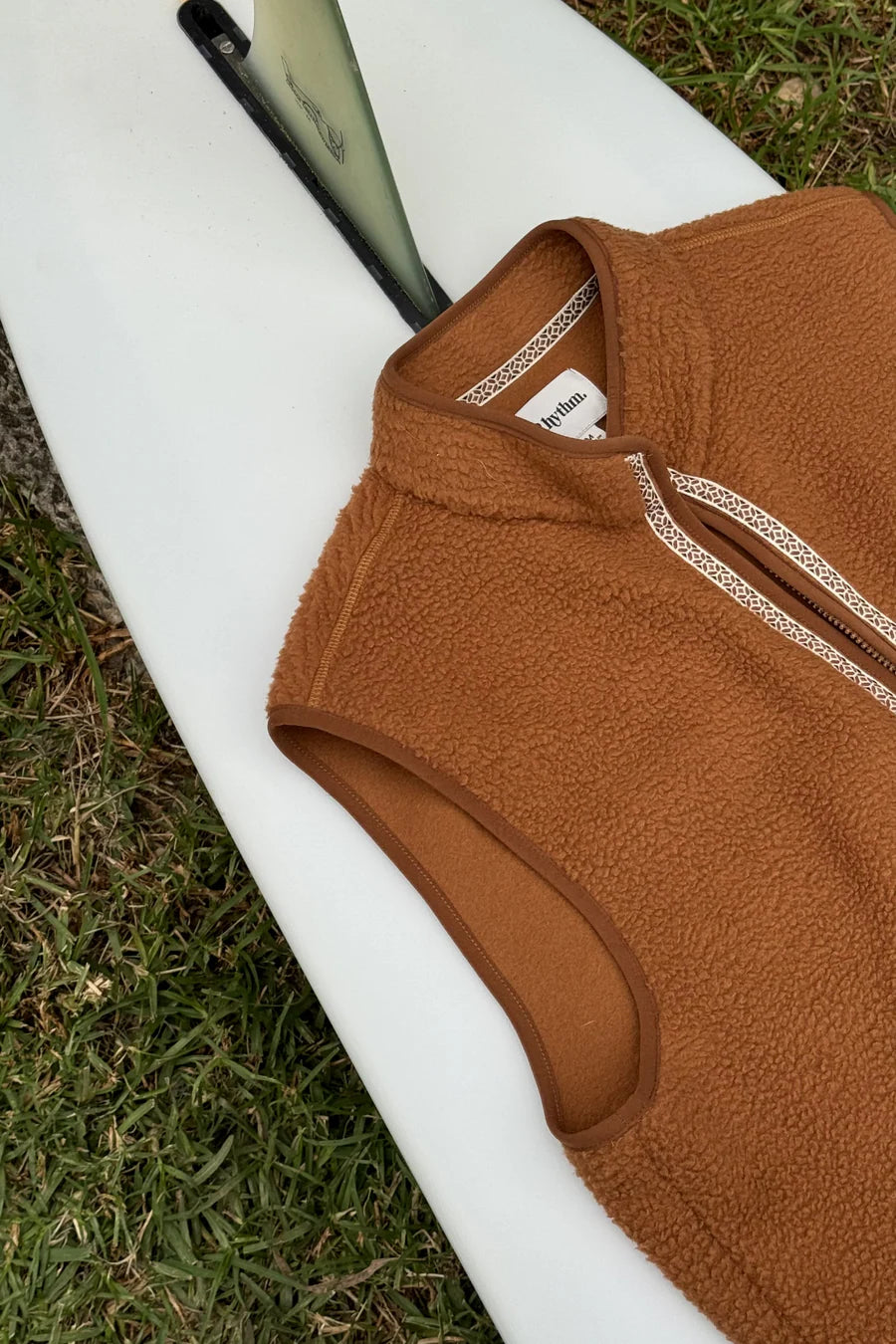 The Marco Sherpa Vest is a boxy vest designed for coastal style. Featuring a cozy sherpa texture, contrast trim, and zipper closure, it's perfect for layering and adding warmth to your look with a touch of rugged charm.