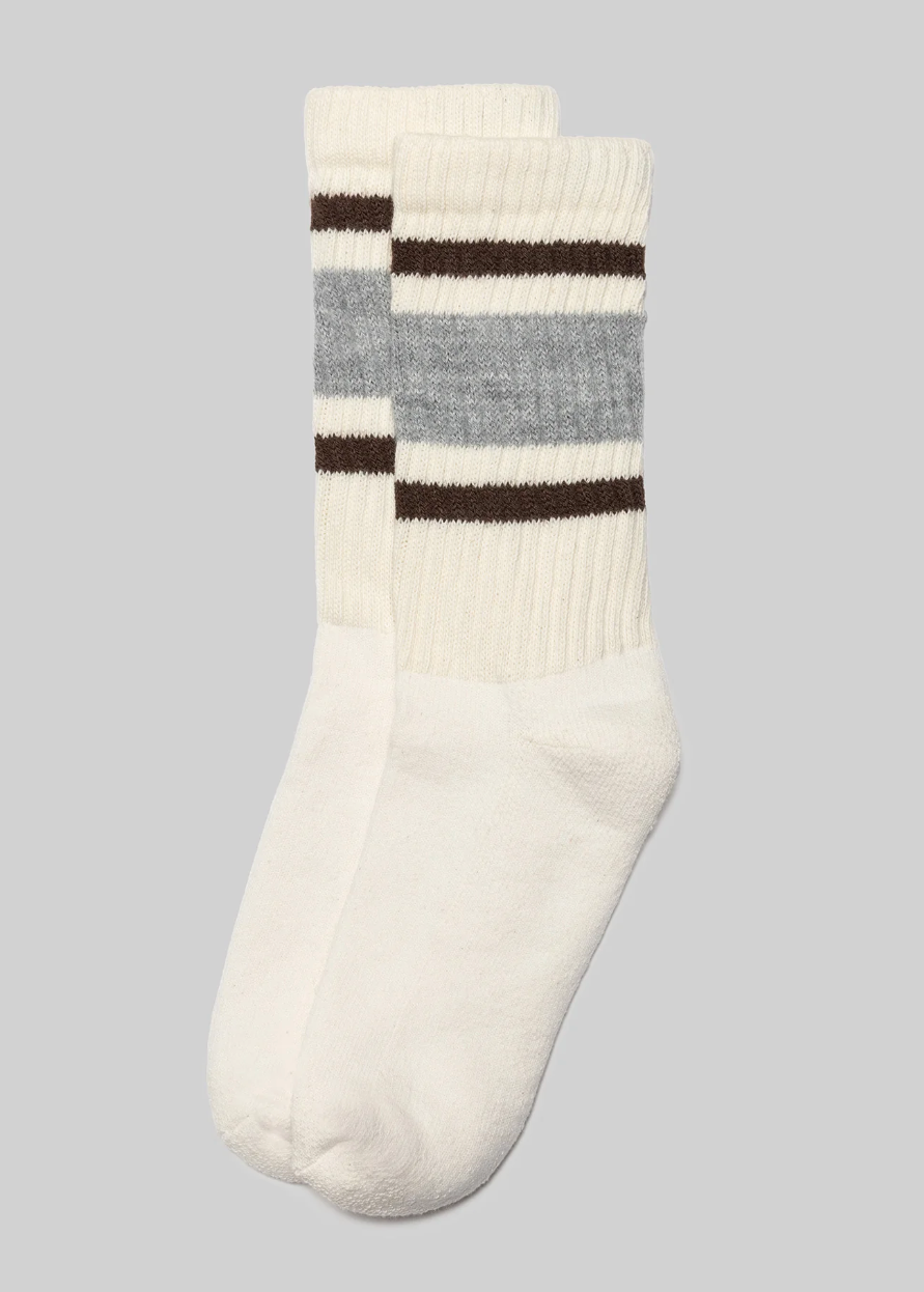 Retro Stripe Crew Socks - Grey Heather / Brown