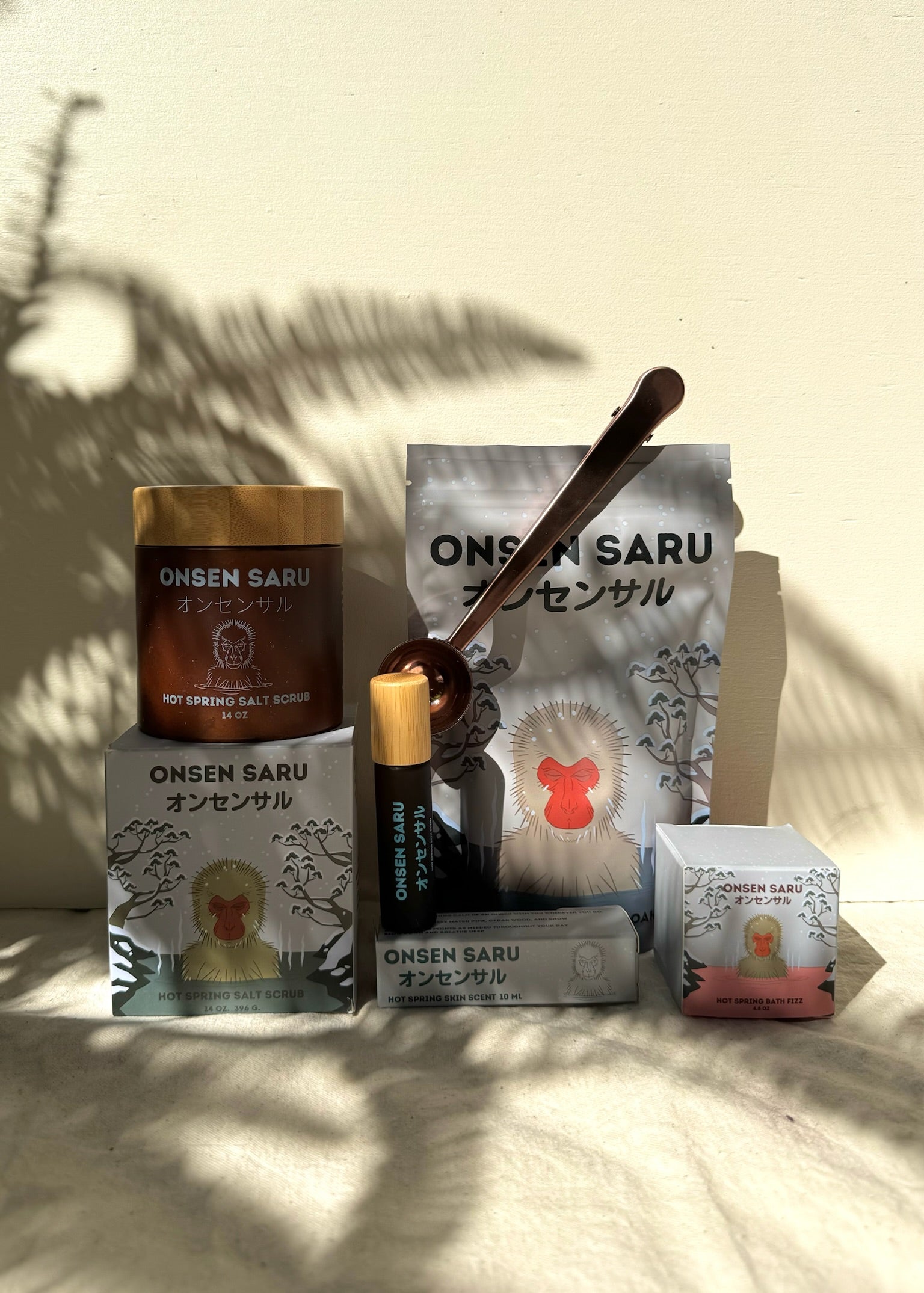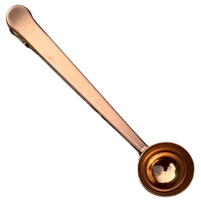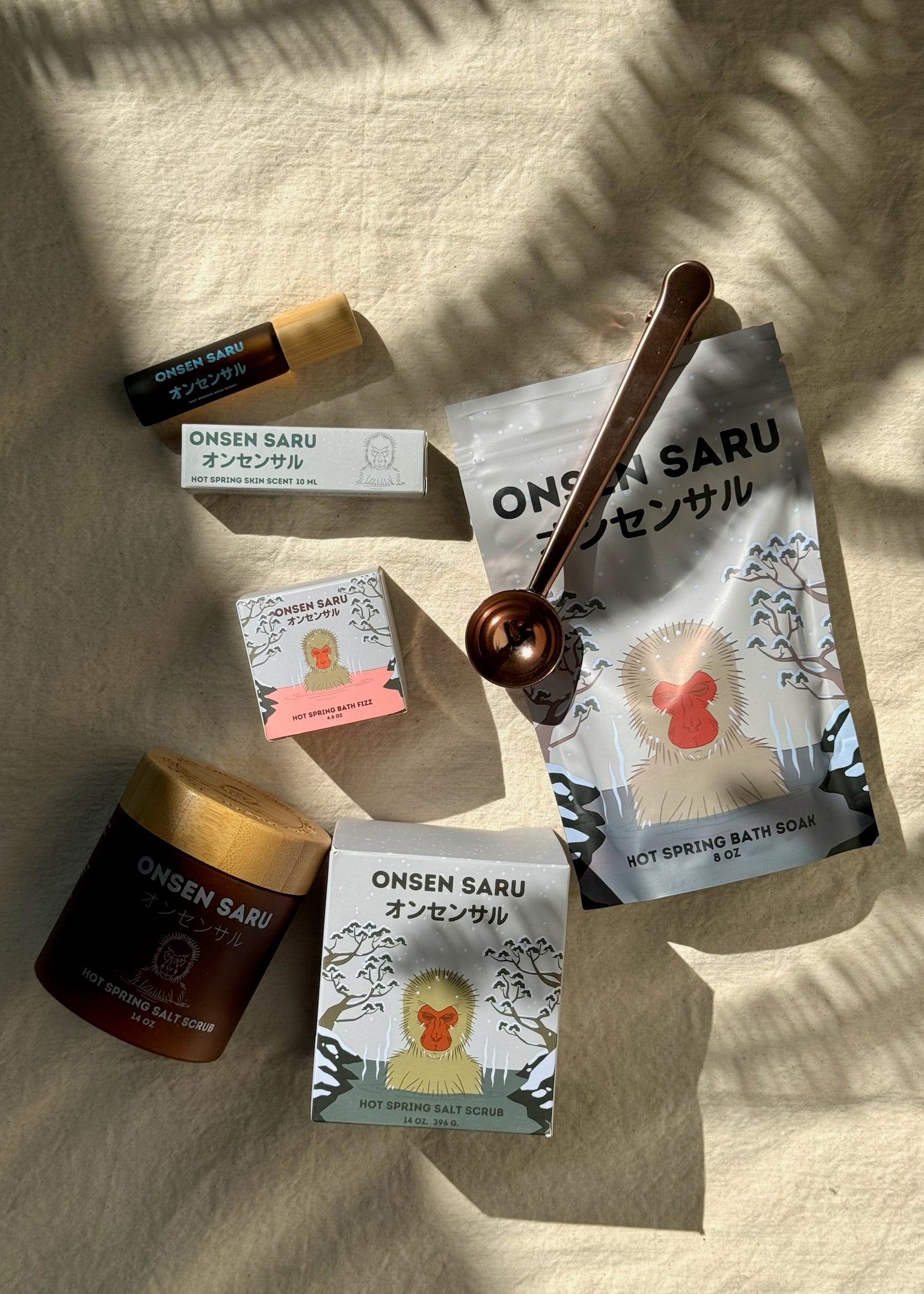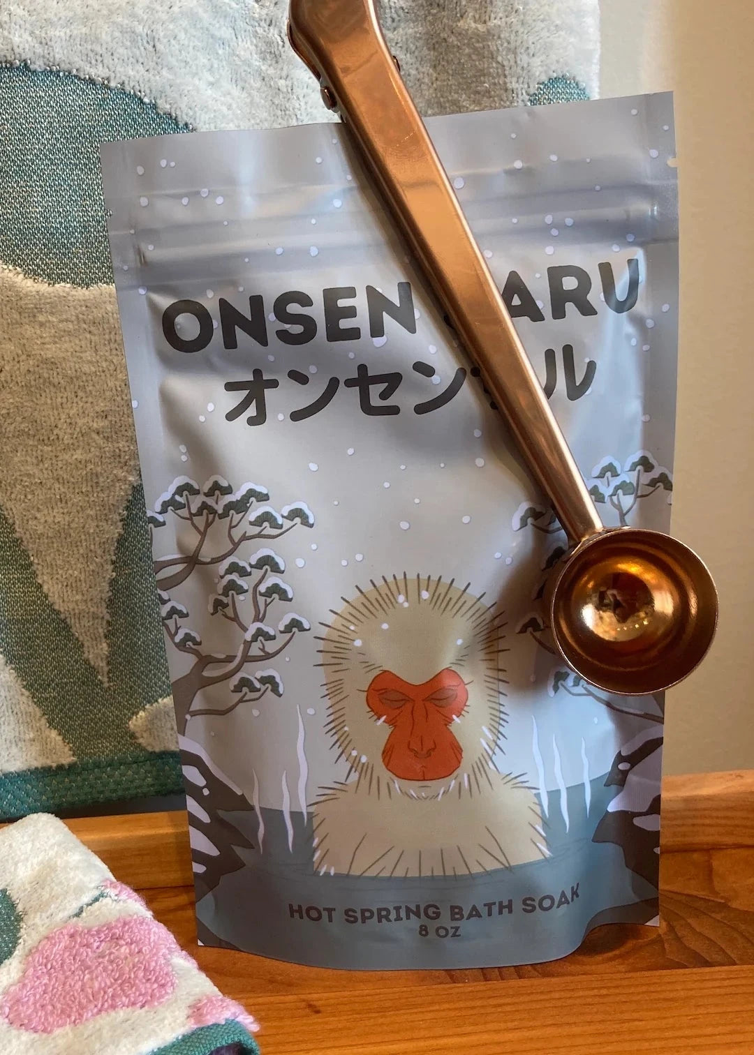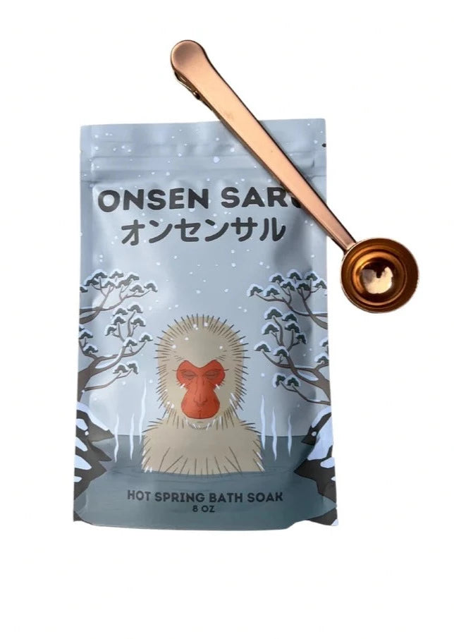 Onsen Saru Bath Soak and this Rose Gold Scoop Clip make the perfect pair. Scoop holds .75 oz and has a handy clip that attaches to bag.