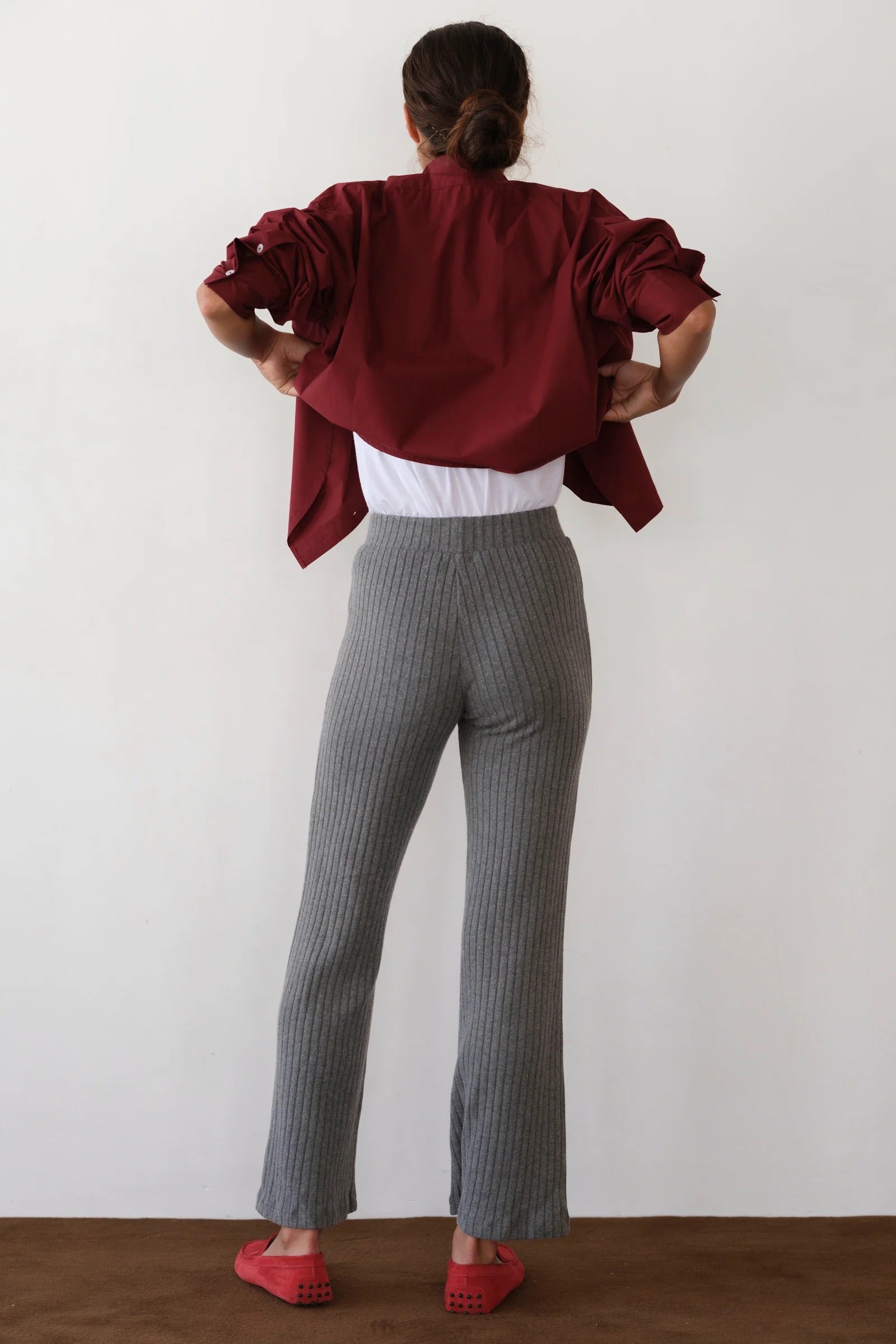 Sweater Rib Kick Flare Pants - Charcoal Grey