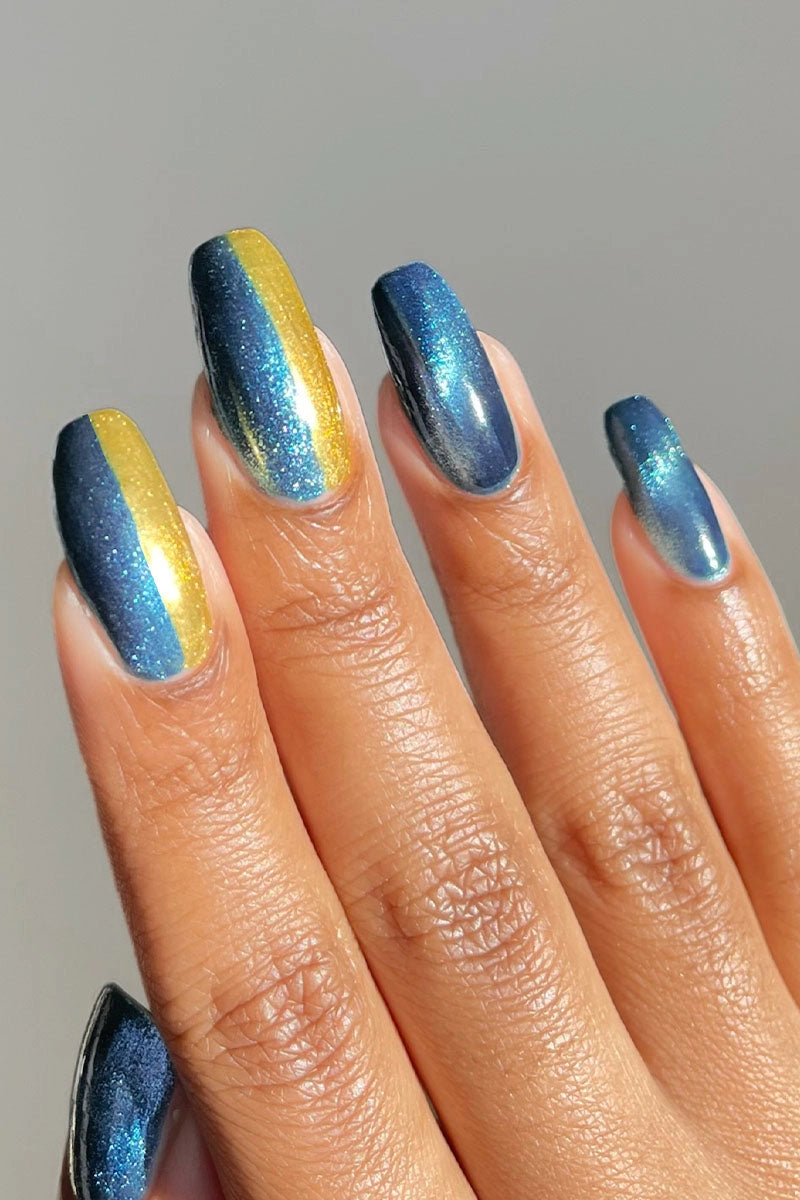Blue Velvet is a navy blue nail polish with silver pigment. Avoid making a fashion faux pas: don’t confuse velvet with velour.