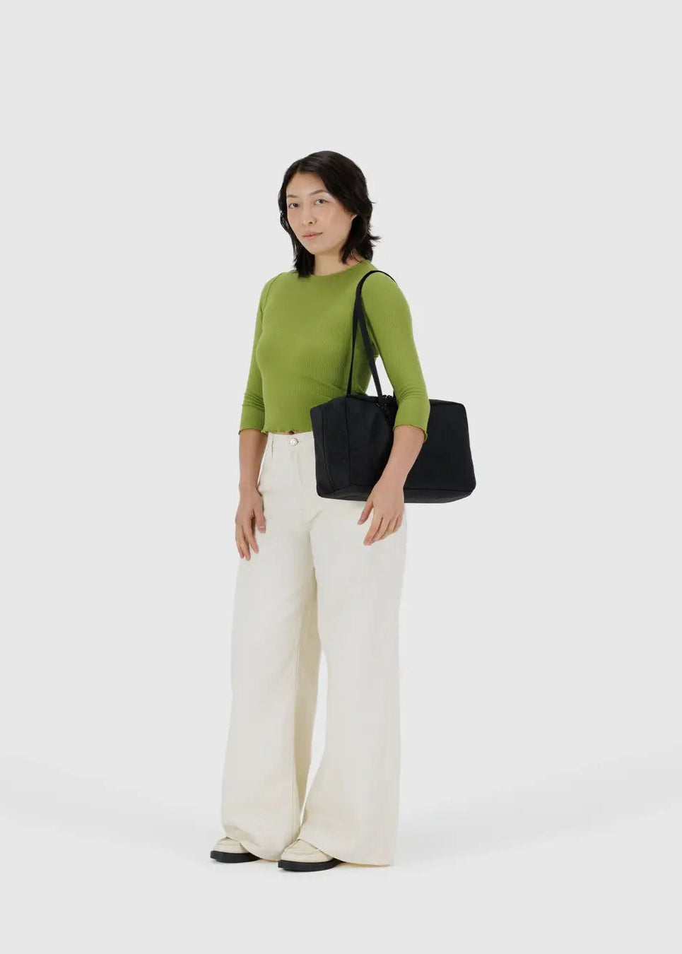 Baggu is an American brand known for its affordable, sustainable bags made from recycled materials. Inspired by the design of a plastic shopping bag, its signature product—the Standard Baggu—is made from ripstop nylon and holds 2–3 times more than a disposable bag. Committed to reducing waste and eliminating single-use plastics, Baggu designs practical, everyday styles using minimal materials to lower costs and fabric waste.